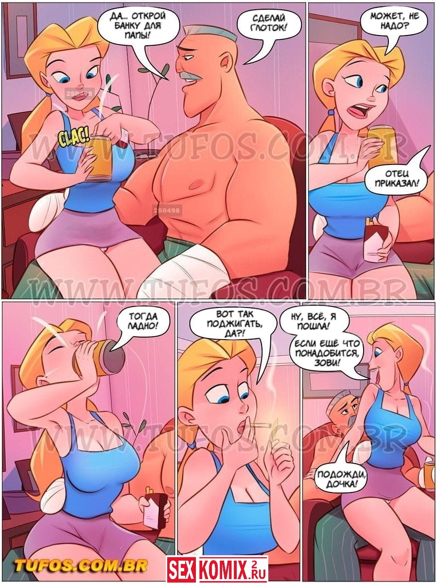 Порно комикс Семья Распутос. Часть 10. Соперницы. На выходных отец семейства решил угостить всех мясом на гриле, но не рассчитал с горючим и обжег себе руки. В понедельник все собираются по делам и мужчина не хочет соваться дом один, так как ничего не может сделать своими обожжёнными руками. Тогда его жена поручает дочерям помогать весь день отцу. Но видимо развратные девочки не так её поняли и помогла мужчине в другом плане. Возбудили его своими попками и трахнули так хорошо, что раны быстро начали заживать.