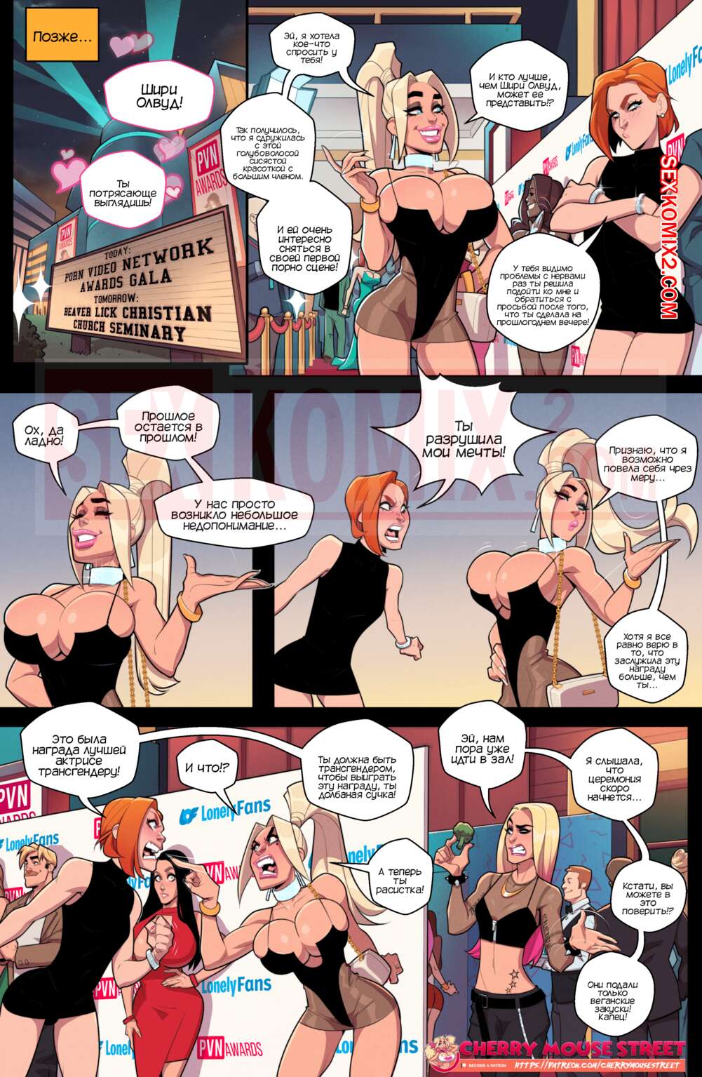 Порно комикс Хлоя и Эмбер. Все любят Пенни. Chloe and Amber. Cherry Mouse Street Горячая сисястая блондинка собирается на вечер награждения порно звезд. Она пять лет подряд становилась лучшей, но в этот раз все идет не совсем по ее сценарию. Everybody Loves Penny. Cherry Mouse Street.