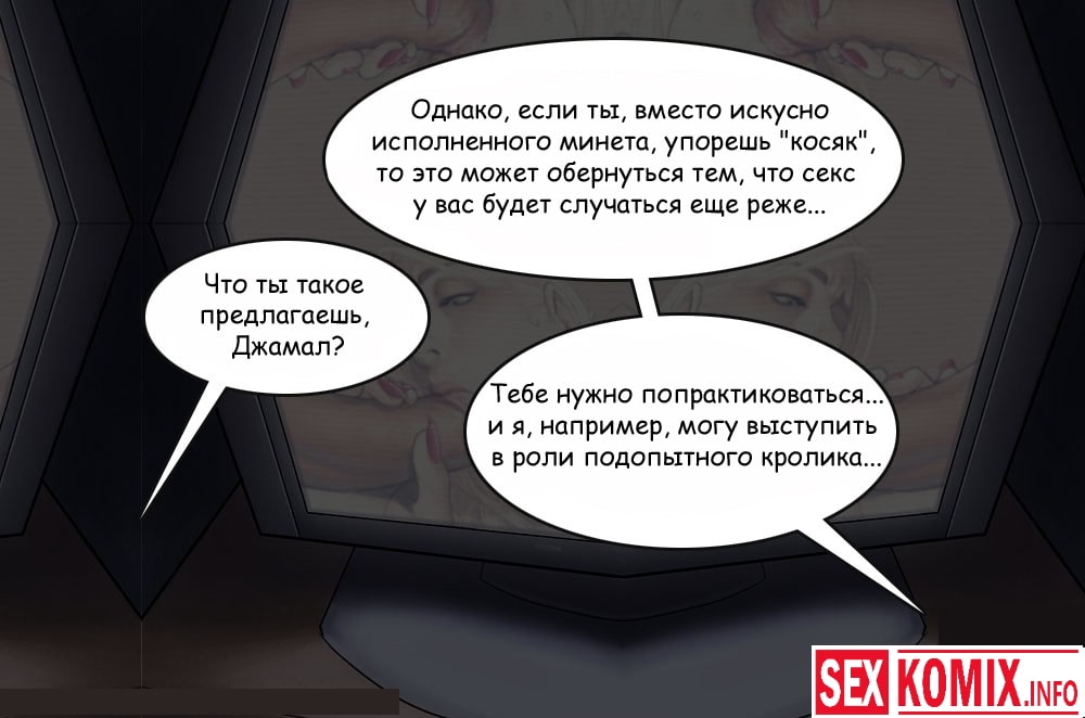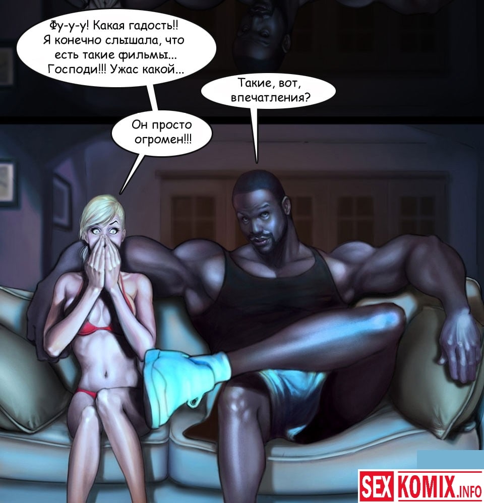 Порно комикс Уроки от соседа. В этом эротическом комикс вы узнаете, что в соседний особняк рядом с домом сексуальной блондинки переезжает чернокожие. Меган идет знакомиться с ними и узнает, что ее черный сосед сексолог. Девушка решает переговорить с ним по поводу семейных проблем и получает эротические советы , и плюс к этому огромный член, которым парень её трахает.