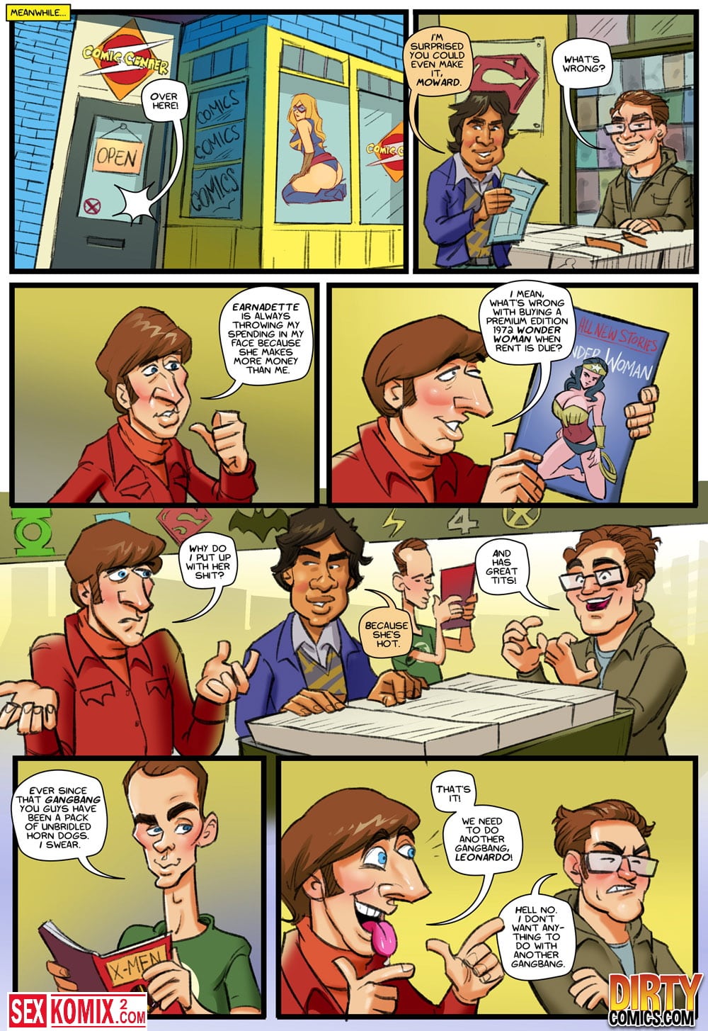Порно комикс Теория большой оргии. Часть 2. Английский. Пени пошла на пробы, но вместо прослушивания ей устроили секс кастинг и блондинка на него согласилась. После то как она отработала несколько черных членов её взяли на главную роль в порно фильме. Когда ей муж увидел это видео ему ничего не оставалось кроме как дрочить на то как его жену трахают чернокожие.