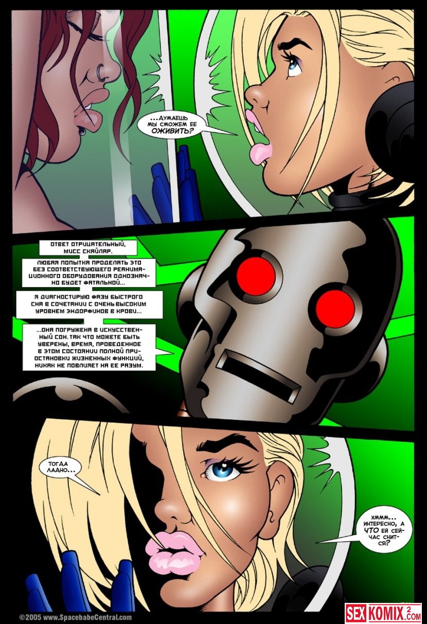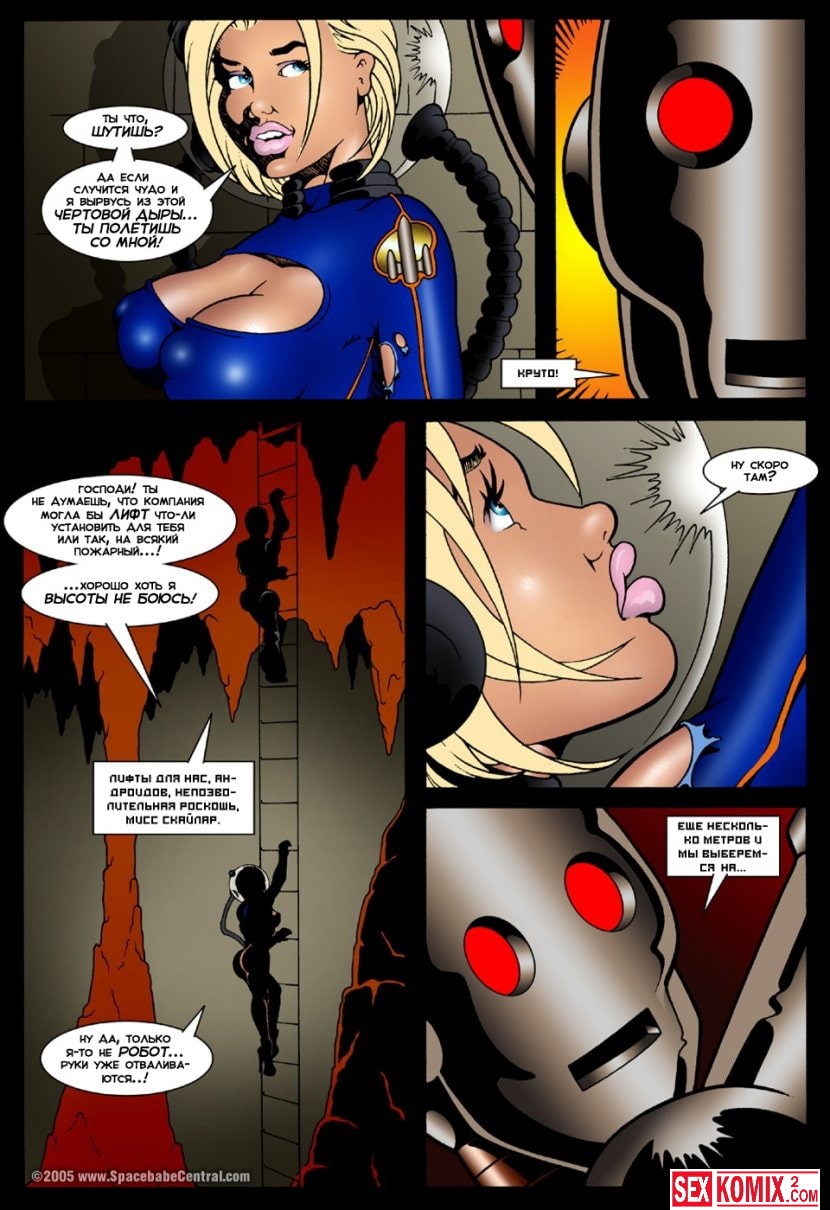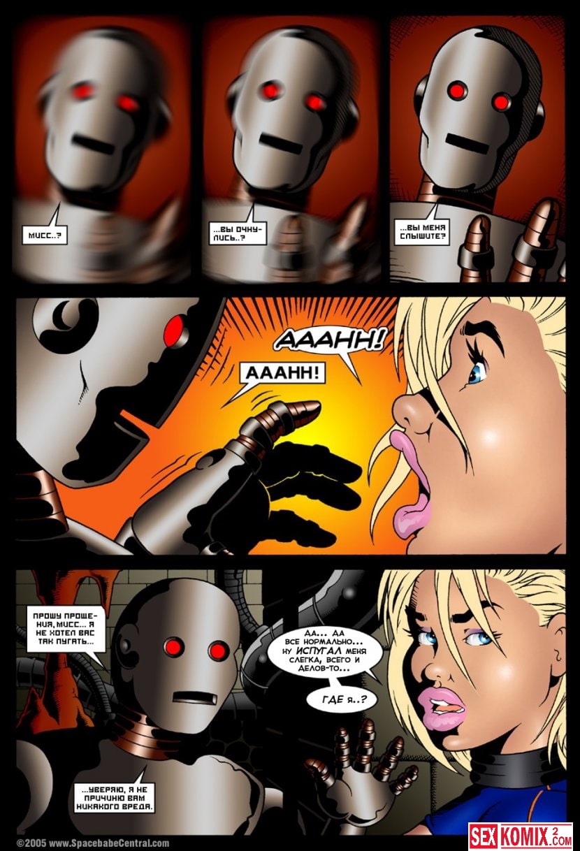 Порно комикс Похотливая наука. Сексуальная блондинка в большими сиськами и сочными губками из будущего, решила попробовать секс с роботом. Для этого у него есть член похожий на человеческий, но металлический. Стоит он очень крепко и удовольствия девушка получила больше.