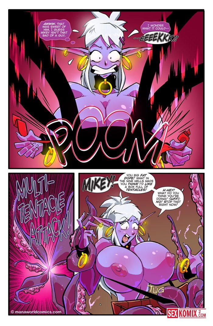 Порно комикс Коробка Веселья. ManaWorld. Часть 4. Английский. Девушка с большими сиськами вернувшись домой, обнаруживает записку от своего друга. Там говориться, что красотка должна проверить сундук удовольствий. Она не поняла почему он так называется, но все же решила посмотреть. Что же там.
