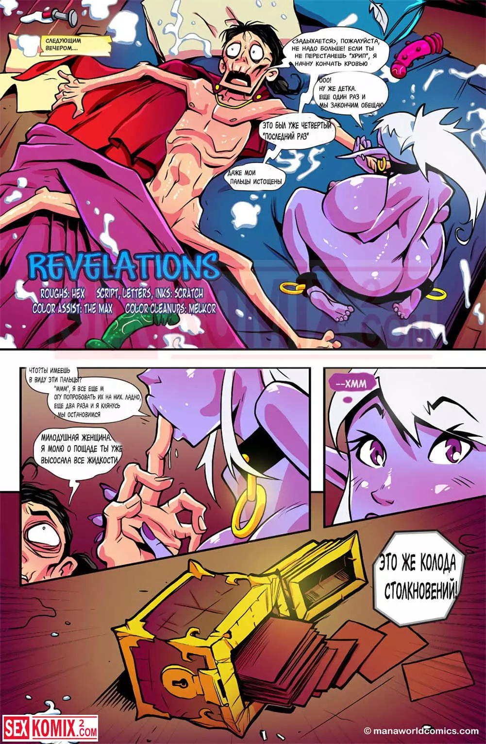 Порно комикс Мир Маны. Часть 6. Откровения. На русском. После жаркой ночи с капитаном, сексуальная эльфийка захотела заполучить его волшебные карты. Она начала рассказывать свою длинную историю. Но парень уже и так решил, отдать ей карты.