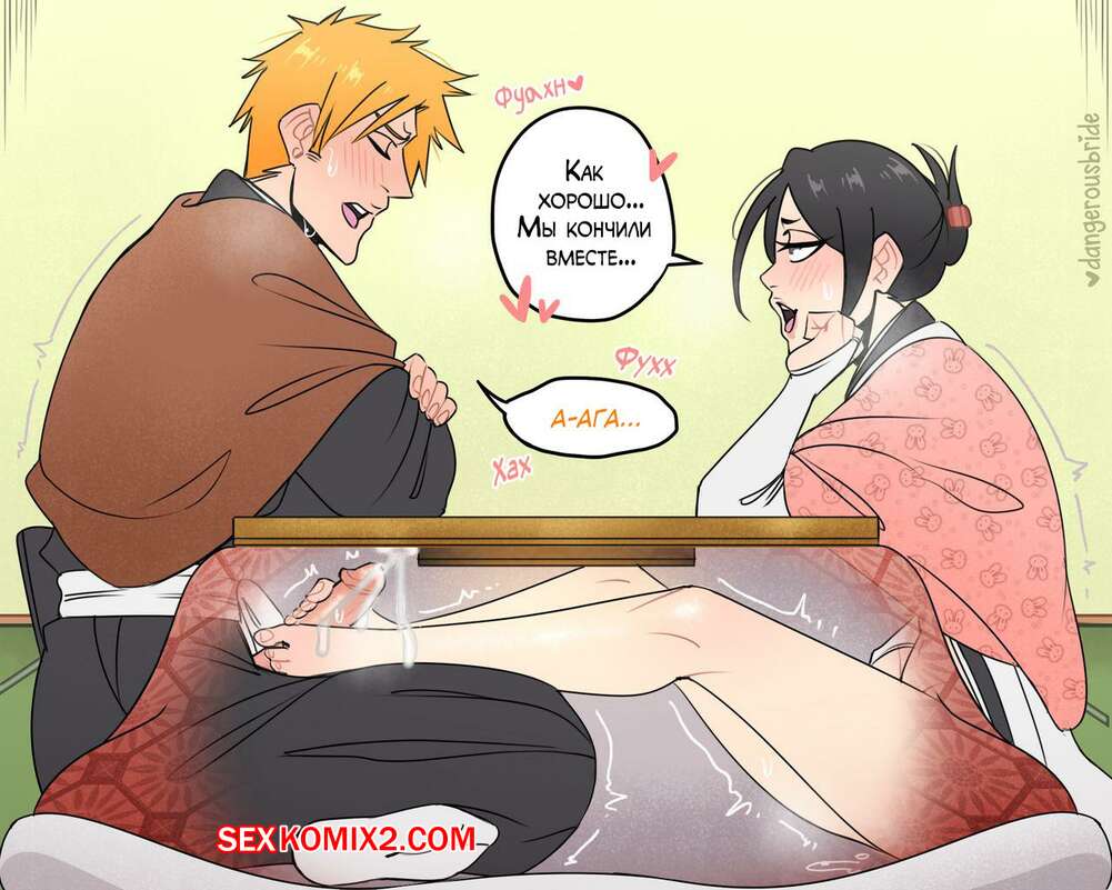 Порно комикс Bleach. Рукия х Ичиго. Часть 7. Dangerous Bride Горячая сисястая брюнетка просто без ума от большого хуя своего дружка. Красотка разделась перед парнем и стала у него отсасывать, после чего дала ему себя хорошенько выебать.