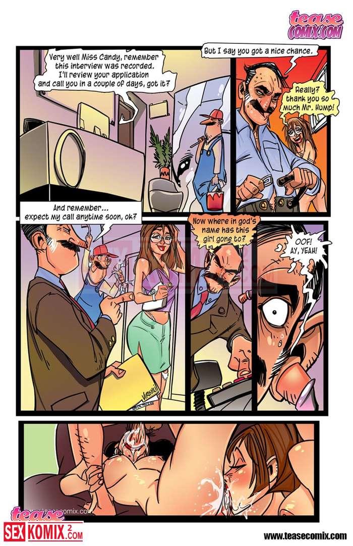 Порно комикс Дженни нужна работа. Знойна брюнетка с большими сиськами пришла устраиваться на работу в крупную корпорацию. Начальник сразу проверил её на профпригодность.