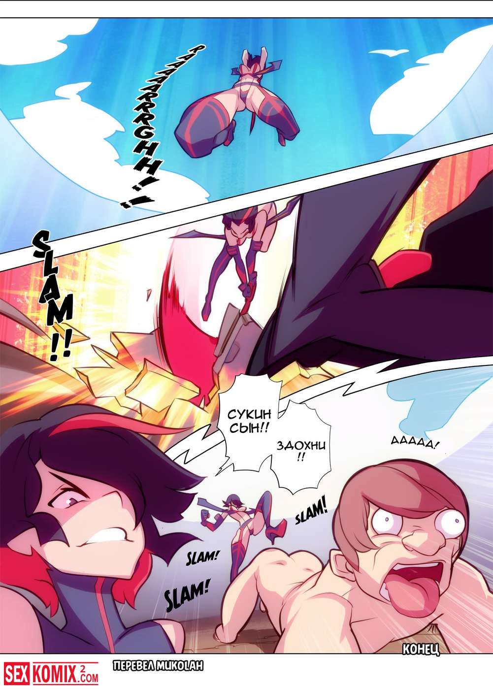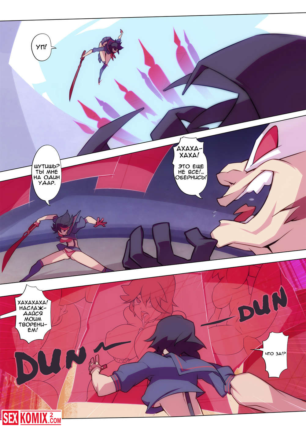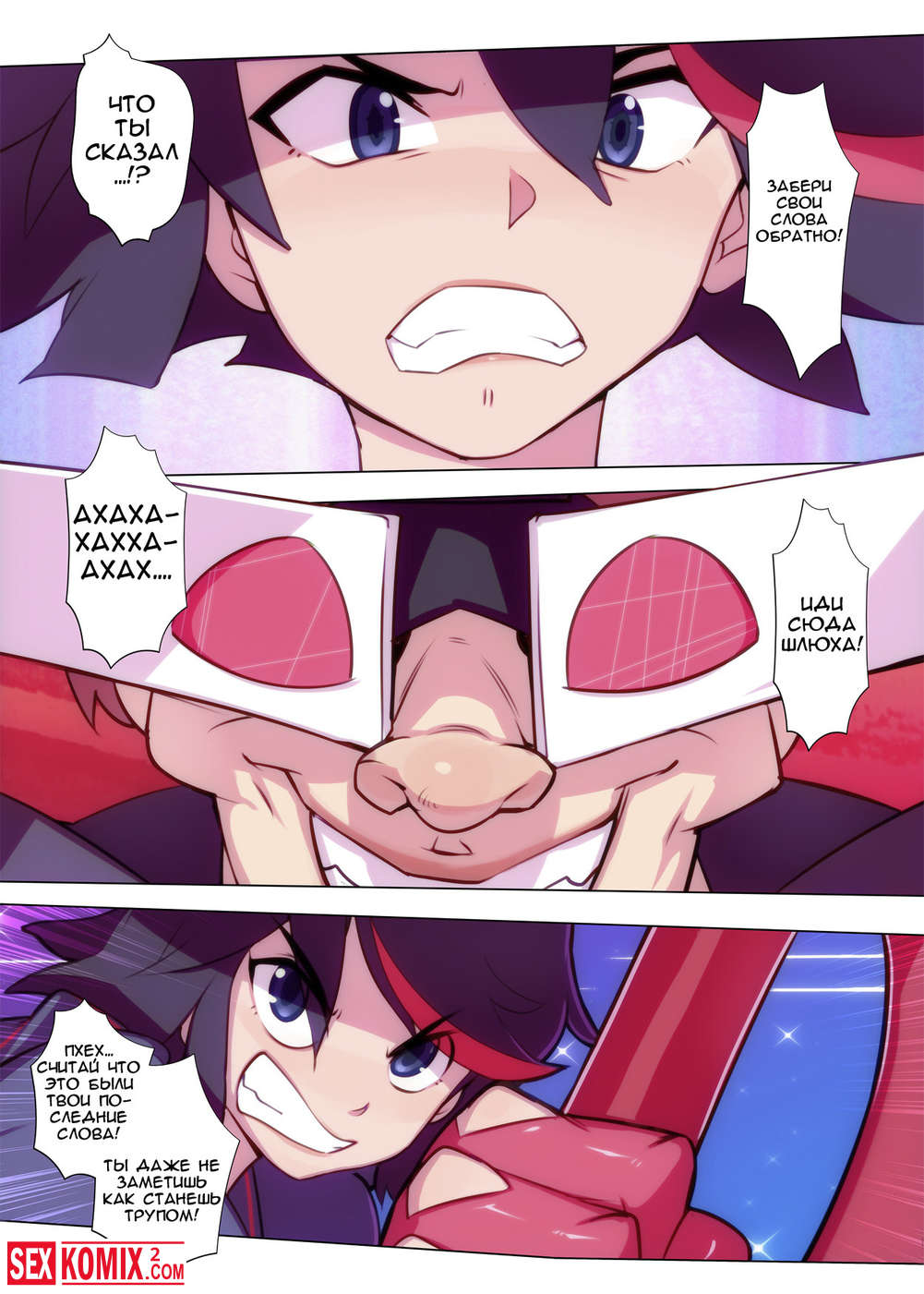 Порно комикс Без резьбы. Kill la Kill. Парень бросил вызов нашей героине, она не смогла отказаться от этого боя, так как он её начал оскорблять и провоцировать и поплатился за это.