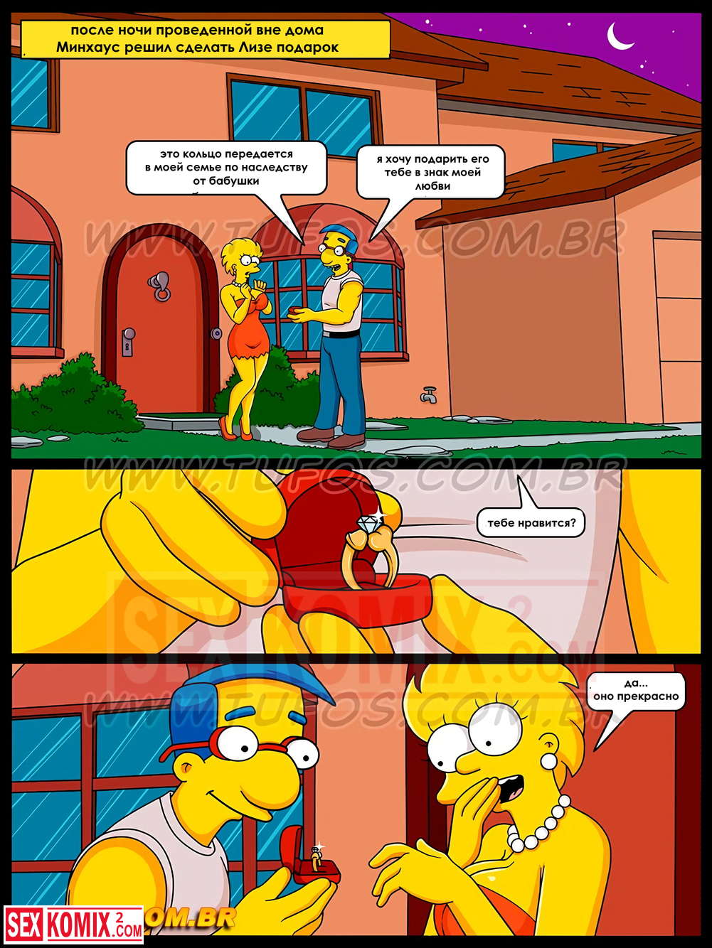 Порно комикс Симпсоны. Часть 17. Драгоценное кольцо. Минхауз подарил Лизе золотое кольцо, но в замен она должна позволить трахнуть себя в задницу.