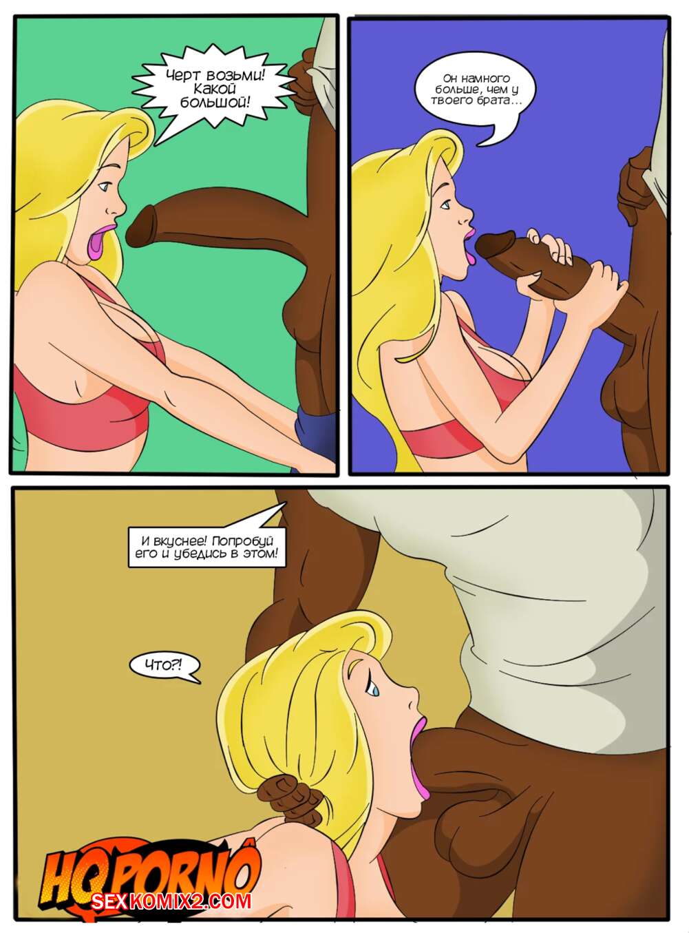 Порно комикс Патрисинья и Портер. Часть 10. A Patricinha e o porteiro. HQporno Сексуальная блондинка осталась наедине с темнокожим парнем и не могла поверить в размеры его члена. Красотка разделась и стала отсасывать у парня, после чего он ее хорошенько выебал.