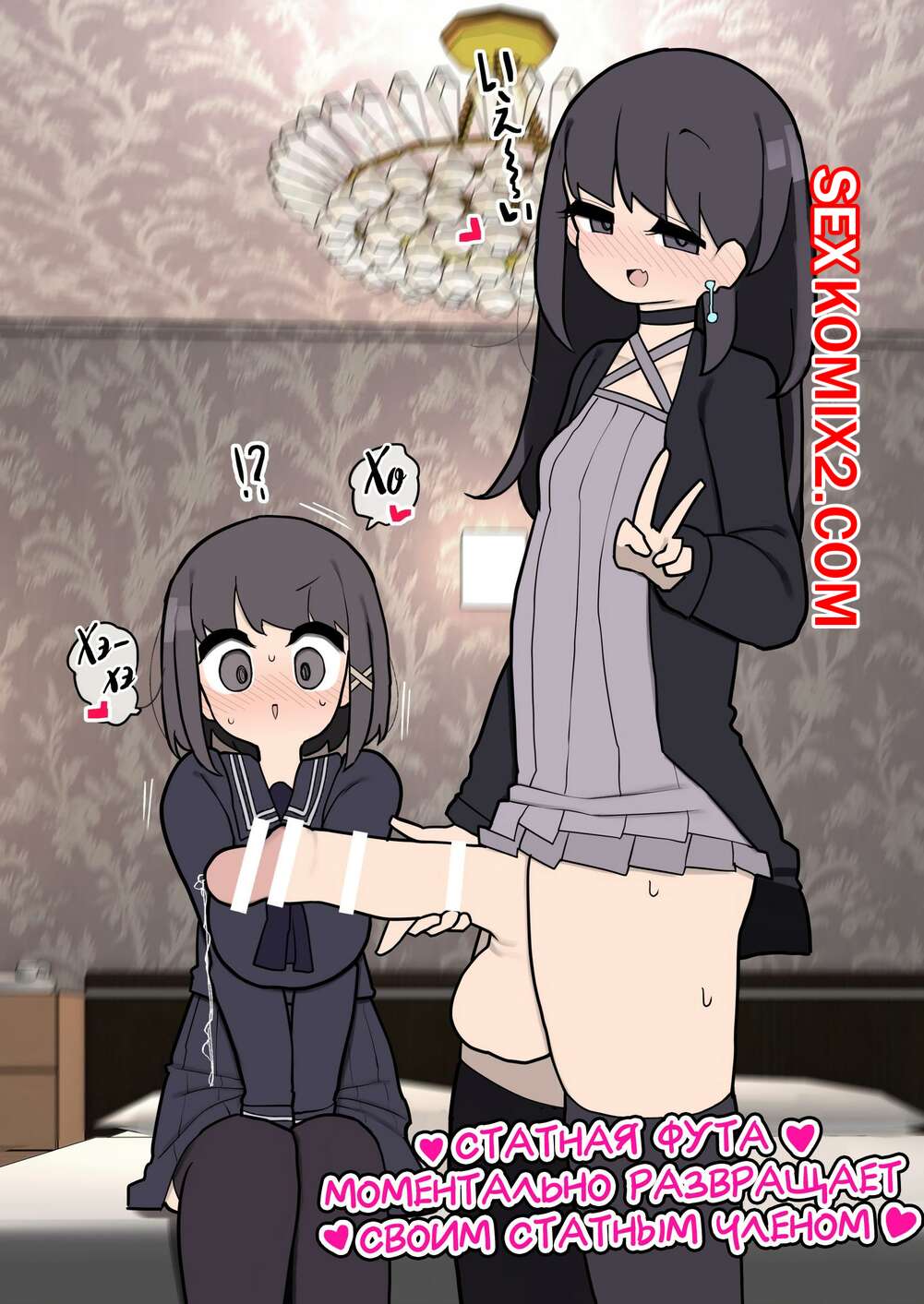 Порно комикс Статная фута моментально развращает своим статным членом. Momomo Молодые горячие брюнетки просто без ума от большого члена своей сексуальной подруги. Они разделись и стали у нее отсасывать, после чего дали ей себя выебать и кончить в них.