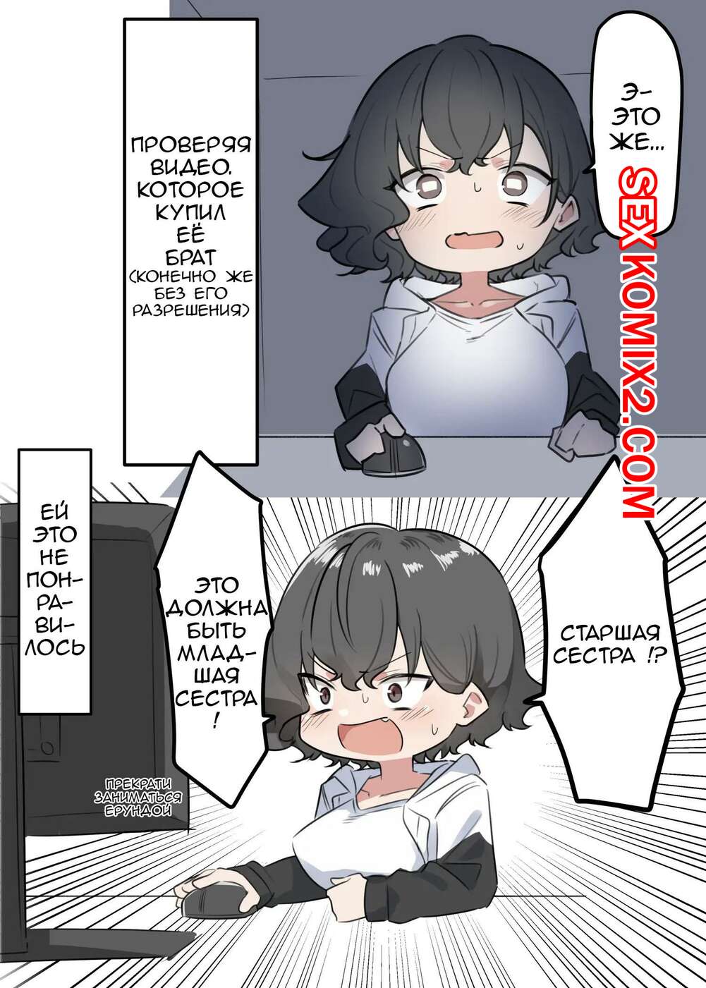 Порно комикс Любитель поцелуев Мей Чан. Старшая сестрица Парень вернулся домой, где его ждала возбужденная сексуальная сестренка. Девушка разделась перед парнем и стала дрочить его большой хуй своими сиськами, помогая парню кончить.