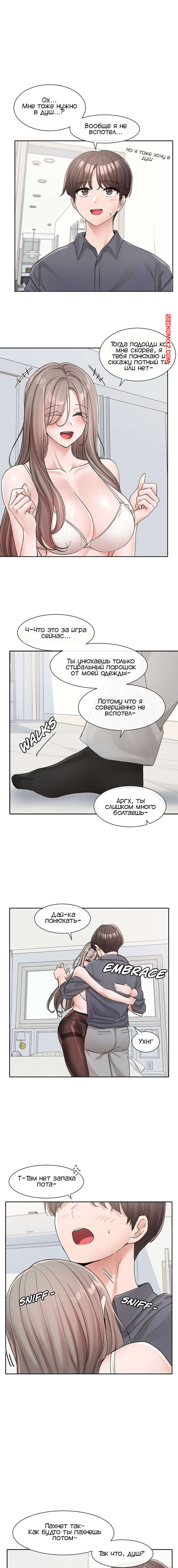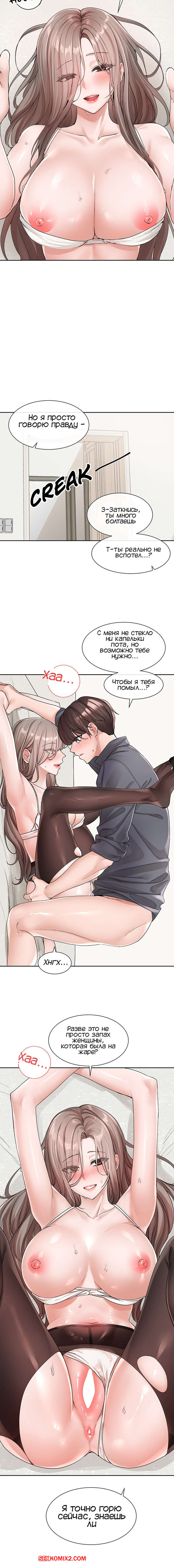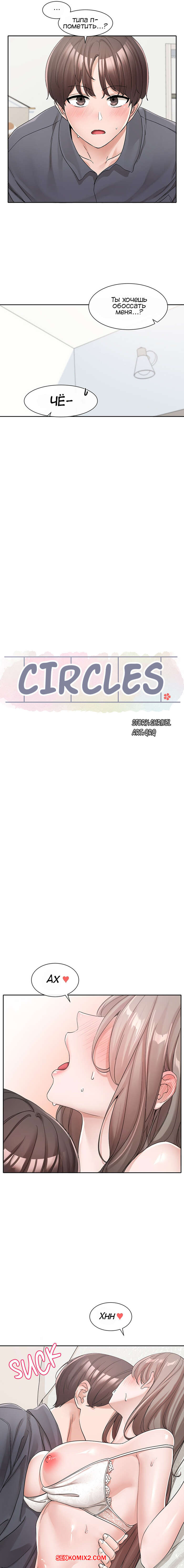 Порно комикс Театральный клуб. Часть 123. Circles. Theater cociety Сексуальная брюнетка разделась перед парнем и он стал ласкать ее большие сиськи. Красотка повалила парня на кровать и оседлала его большой хуй, после чего дала ему себя выебать.