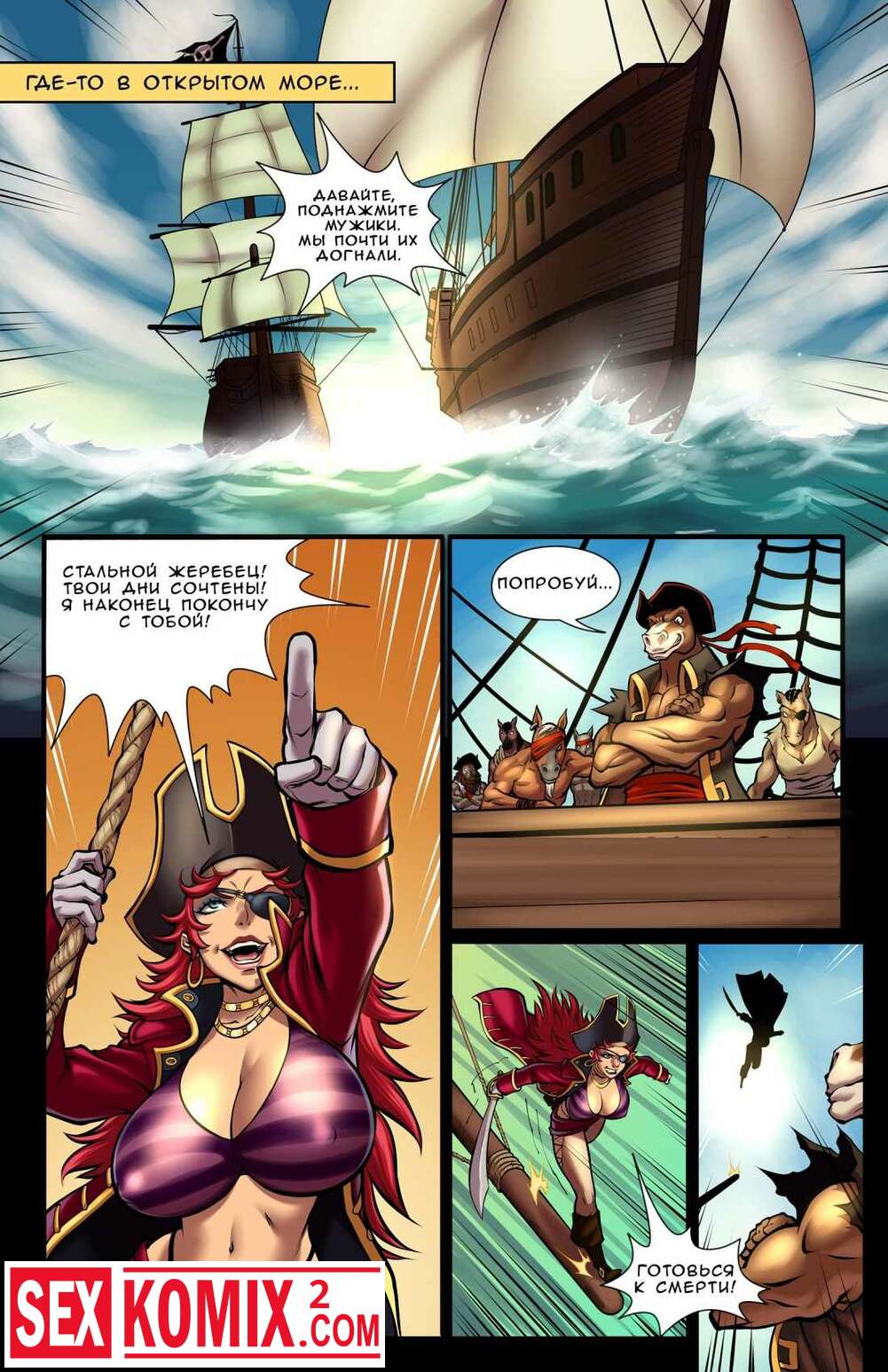 Порно комикс Королева пиратов. Моряк с железным членом, совратил женщину капитана, он снял с неё одежду и трахнул в её каюте.