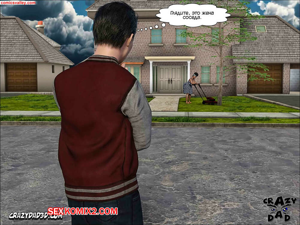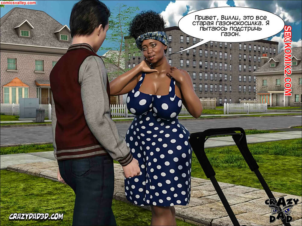 Порно комикс Помощь мамы. Часть 22 и 23. Moms Help. CrazyDad3D Вилли искал свою маму, но нигде не смог ее найти. Он увидел через дорогу свою горячую соседку и вызвался ей помочь. Дама набрала Вилли горячую ванну, чтобы он искупался, а парень решил устроить ей шоу, начав дрочить свой огромный член, представляя голое тело шикарной соседки.