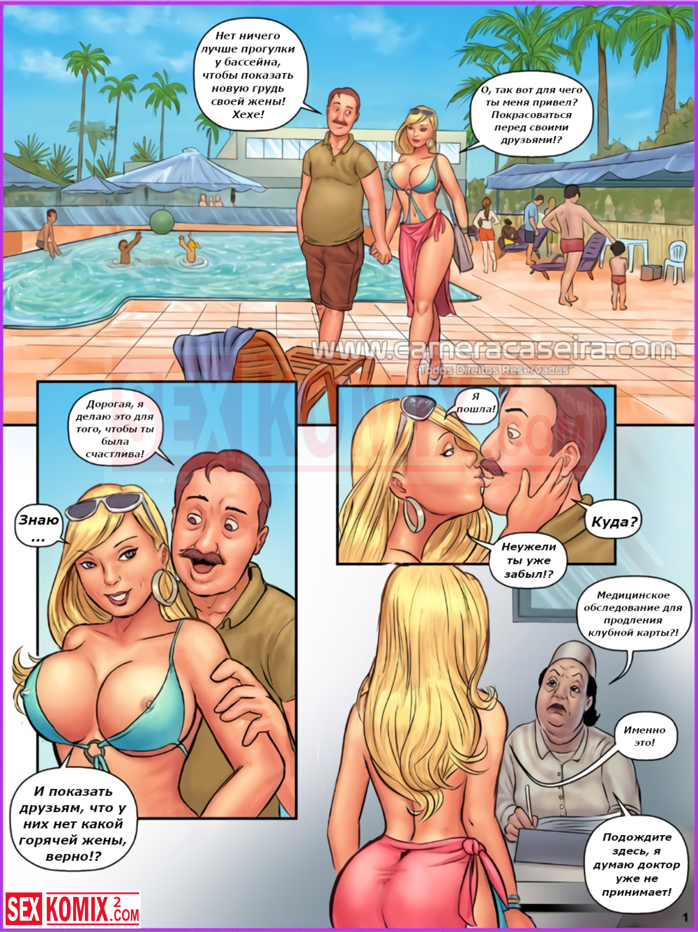 Порно комикс Медицинский осмотр в клубе. Cameracaseira. Муж привел свою жену с новыми сиськами на мед обследование, а сам пошёл прогуляться. Она не теряла время зря и занялась сексом с доктором.