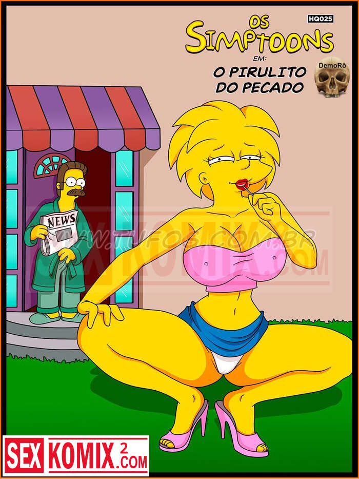 Порно комикс Симпсоны. Часть 25. Леденец греха. Мегги уже выросла и сводит с ума соседа, она сосет сочный леденец. Но девушка чуть не подавилась этой сладость, но мужественные сосед пришёл на помощь.