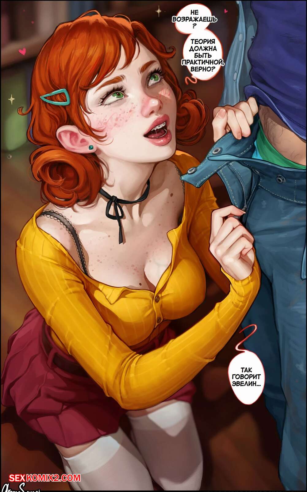 Порно комикс Stardew Valley. Святой Джунимо. Holy Junimo. Aroma Sensei. Молодая рыжая красотка была очень возбуждена и решила повеселиться со своим дружком. Девушка встала на колени и отсосала большой хуй парня, после чего дала ему себя выебать в пизденку и задницу.