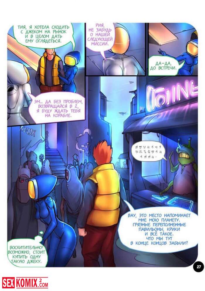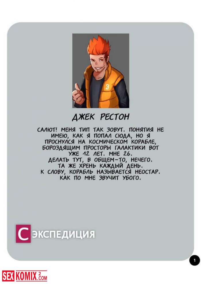 Порно комикс Секспедиция. Части 1 и 2. SEXPEDITION. Парень по имени Джек путешествует по космосу и посещает новые миры, он встретил инопланетную девушку, она захотела попробовать секс с землянином. Джек с радость попробовал, что-то новое и трахнул её инопланетную киску.