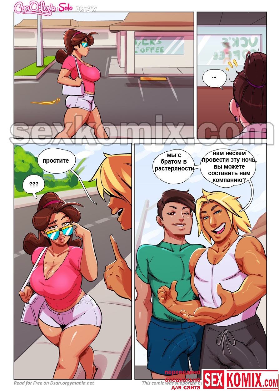 Порно комикс «Кубок любви: Соло. (Cup O’love: Solo)». В этом секс комиксе вы увидите историю молодой девушки по имени Мэй с пышными формами, у неё большие сиськи и жопа. Выглядит она очень сексуально и девушка сама в восторге от своего тела. Как только наша сочная дама проснулась, она пошла в душ и хорошенько прочистила свою вагину, розовым резиновым членом. Отлично, теперь можно идти гулять, на улице её сняли два брата – молодые парни с большими членами. Не долга думая Мэй повела их в туалет кафе, и отдалась сразу двоим. После секса она выпила кофе и пошла по магазинам, но и там её ждали разврат и похоть…