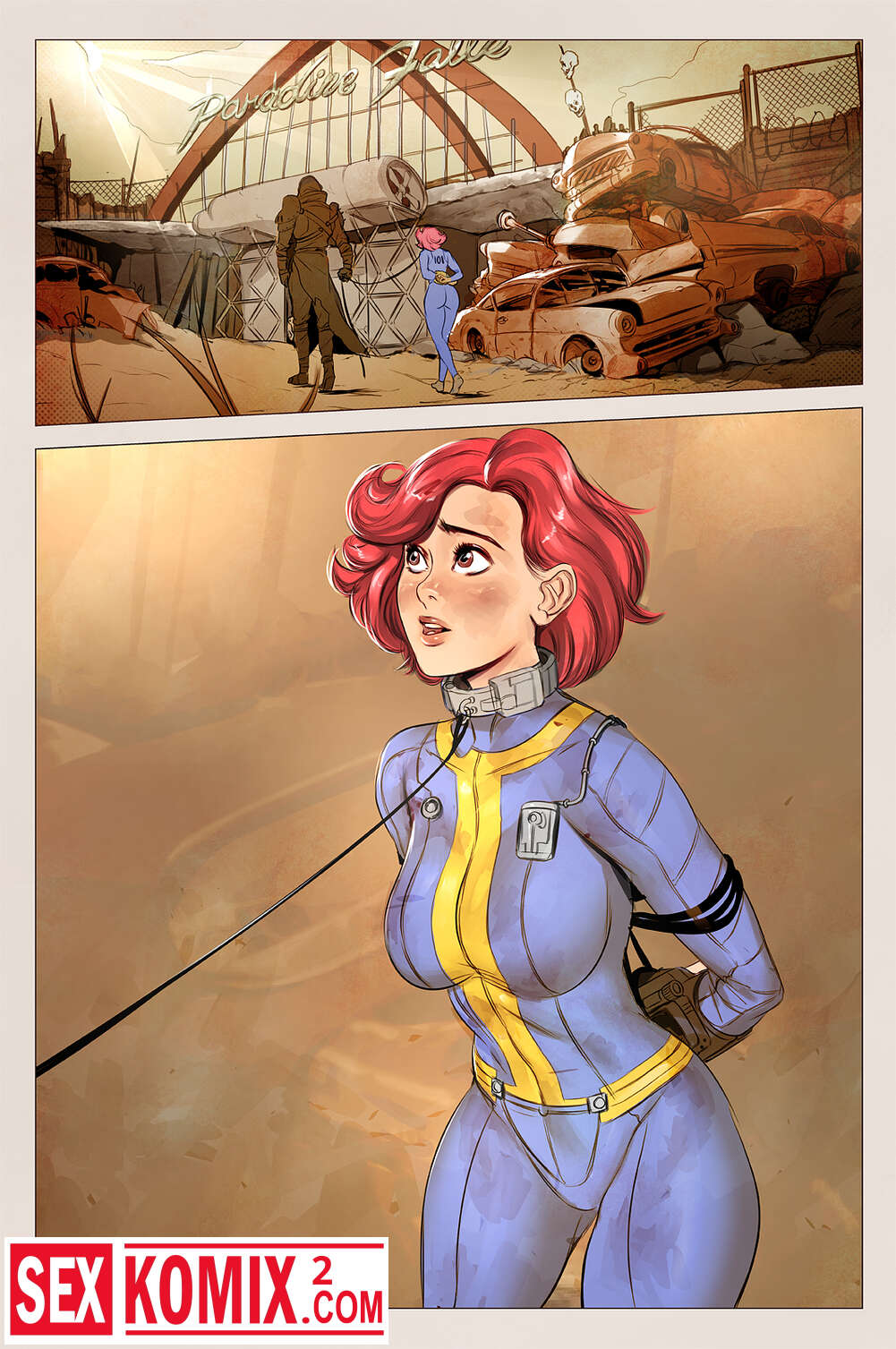 Порно комикс Парадиз Фолз Фаллаут. Paradise Falls Fallout. Cherry-Gig. Рыжеволосая девушка выбралась из бункера после апокалипсиса и попала в плен к охотнику за головами. Он отвел свою добычу к госпоже. Женщина в черном костюме придумала как использовать эту рабыню.