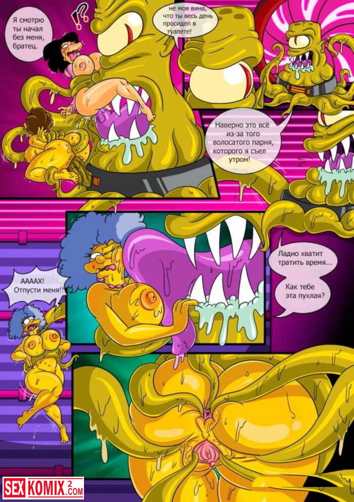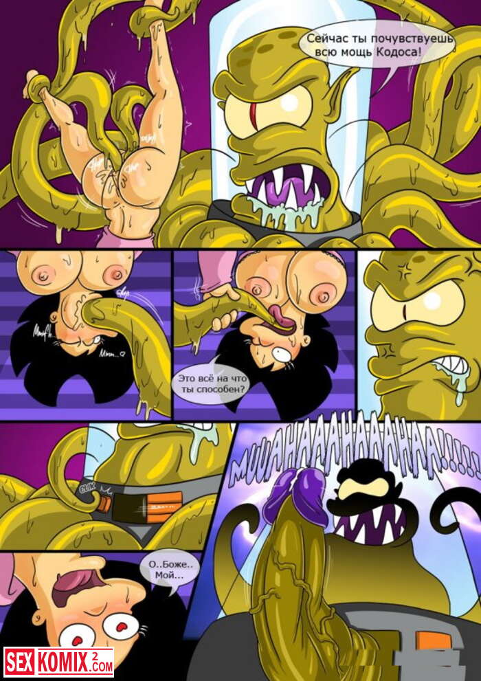 Порно комикс Симпсоны и Футурама. Девушки и женщины из обоих мультфильмов были похищены пришельцами. Эти извращенцы неустанно трахали красоток своими щупальцами.