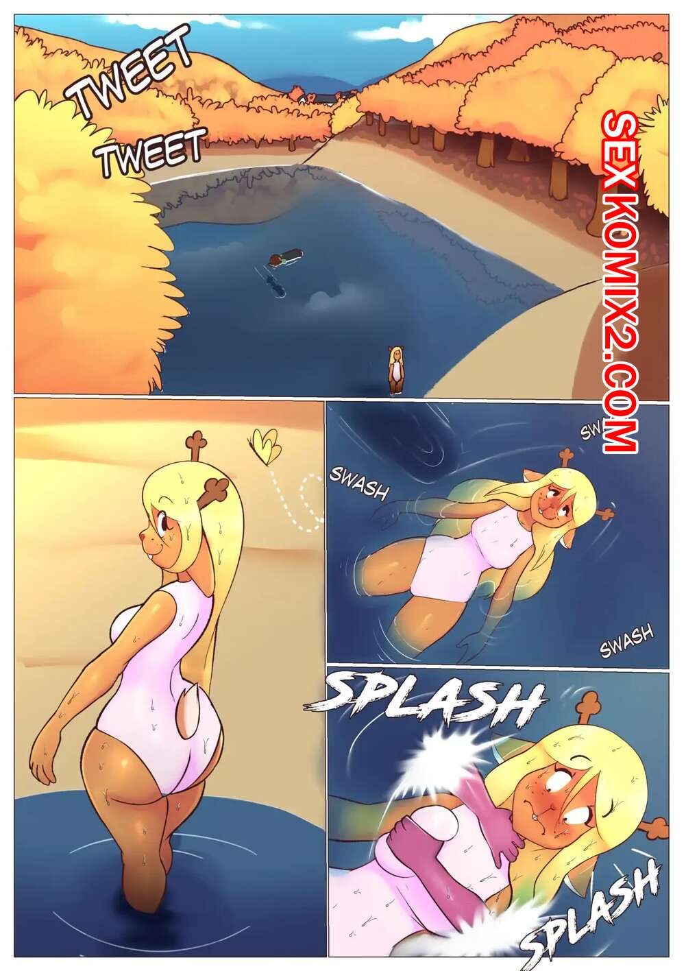 Порно комикс Лето в родном городе. Summer in Home Town. Asmo18mas Горячая блондинка фурри решила искупаться в озере и раслабиться. Там ее схватила девушка брюнетка, которая раздела блондиночку, желая повеселиться с ней.