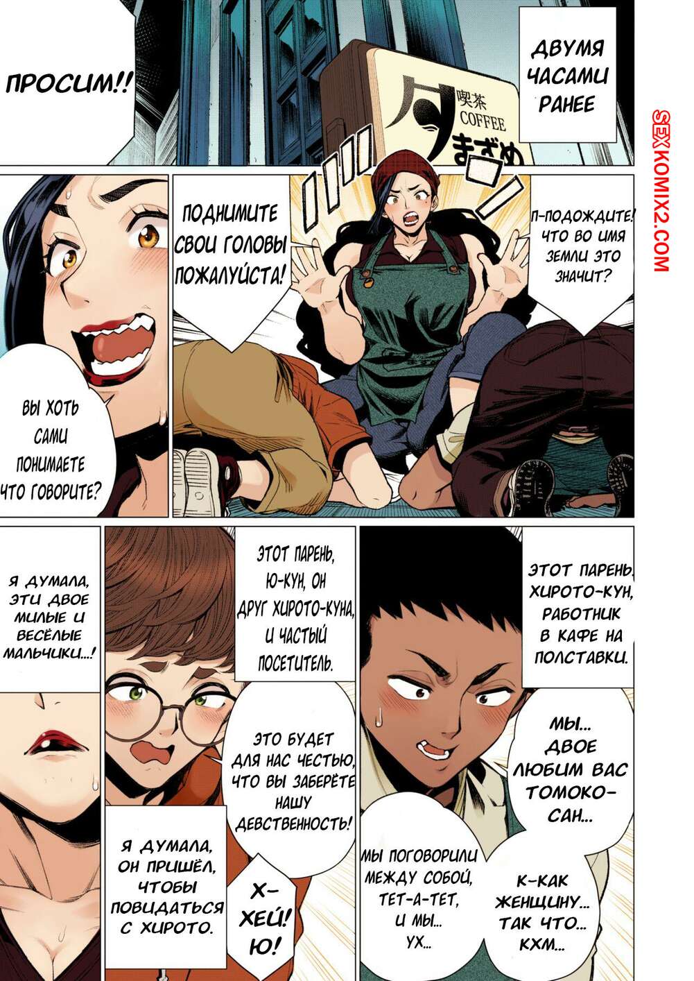 Порно комикс Фирменный сэндвич со зрелым мясом в кафе замужней милфы. Minamida Usuke Горячая брюнетка милфа владеет кафе и любит трахаться. Она разделась перед двумя молодыми клиентами и отсосала их хуи, после чего дала им себя выебать во все дырочки.