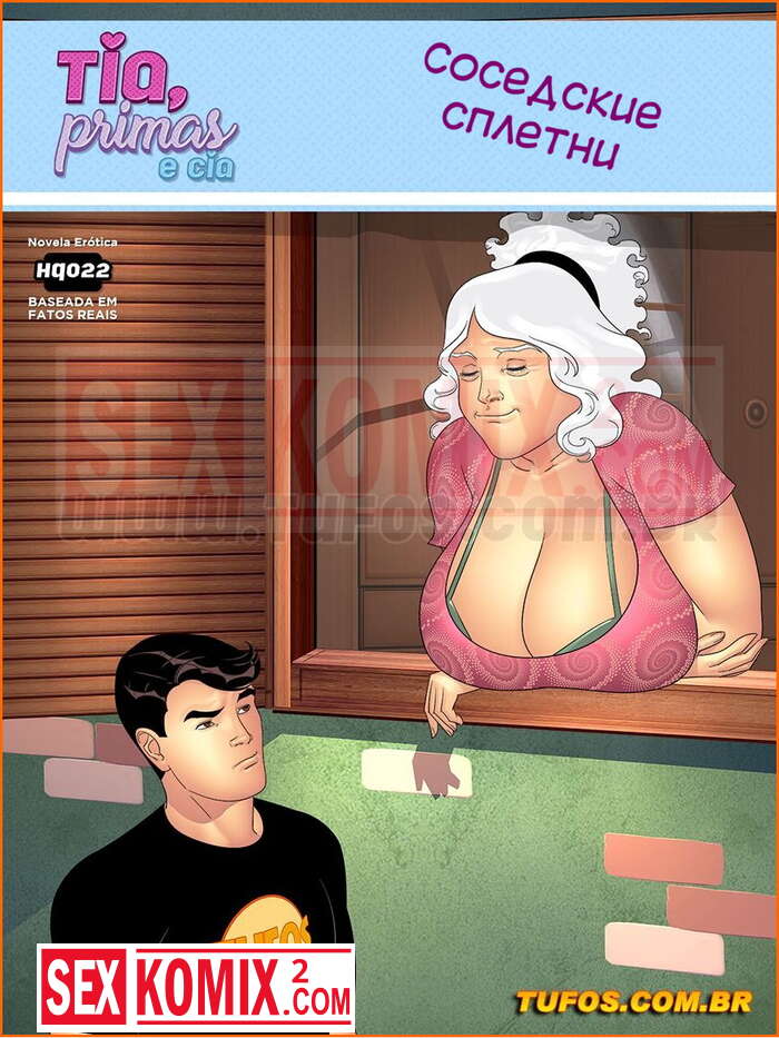 Порно комикс Тетя, кузины и племянник. Часть 22. Соседские сплетни. Джонас пошел на рынок купить мясо к обеду. Но его остановила пожилая соседка, она пригласила его в гости и парень подумал, что женщина хочет трахаться. Но она хотела услышать сплетни о его семье.
