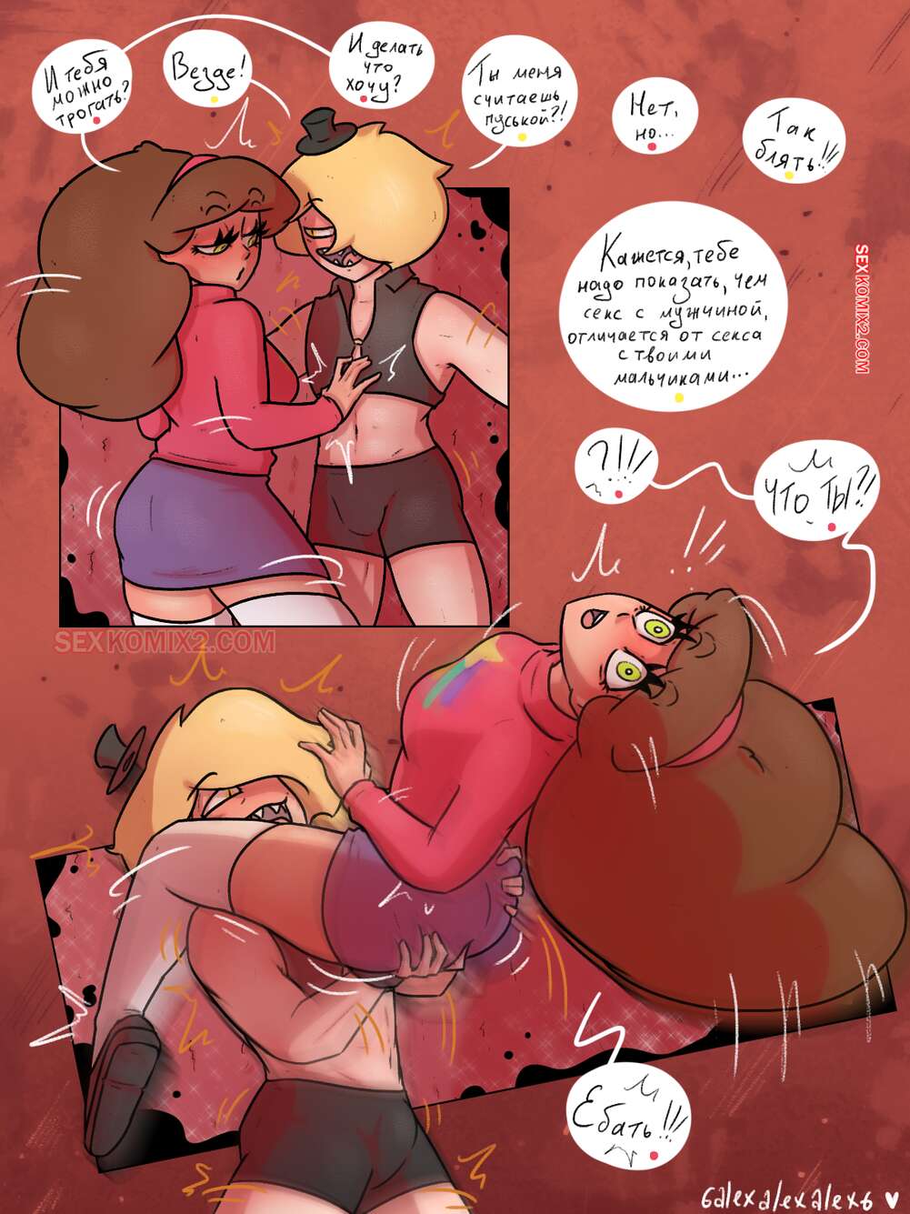 Порно комикс Гравити фолз. Странногидон. 6alexalexalex6. sexkomix2.com. Диппер и Мейбл попали в очень странное место, первое что они увидели это огромный трон сделанный и людей и запертого в клетке их друга. Как они попали туда и удастся им выбраться из этого ужастного места, вы узнаете из нового комкиса от 6alexalexalex6. Приятного чтения.