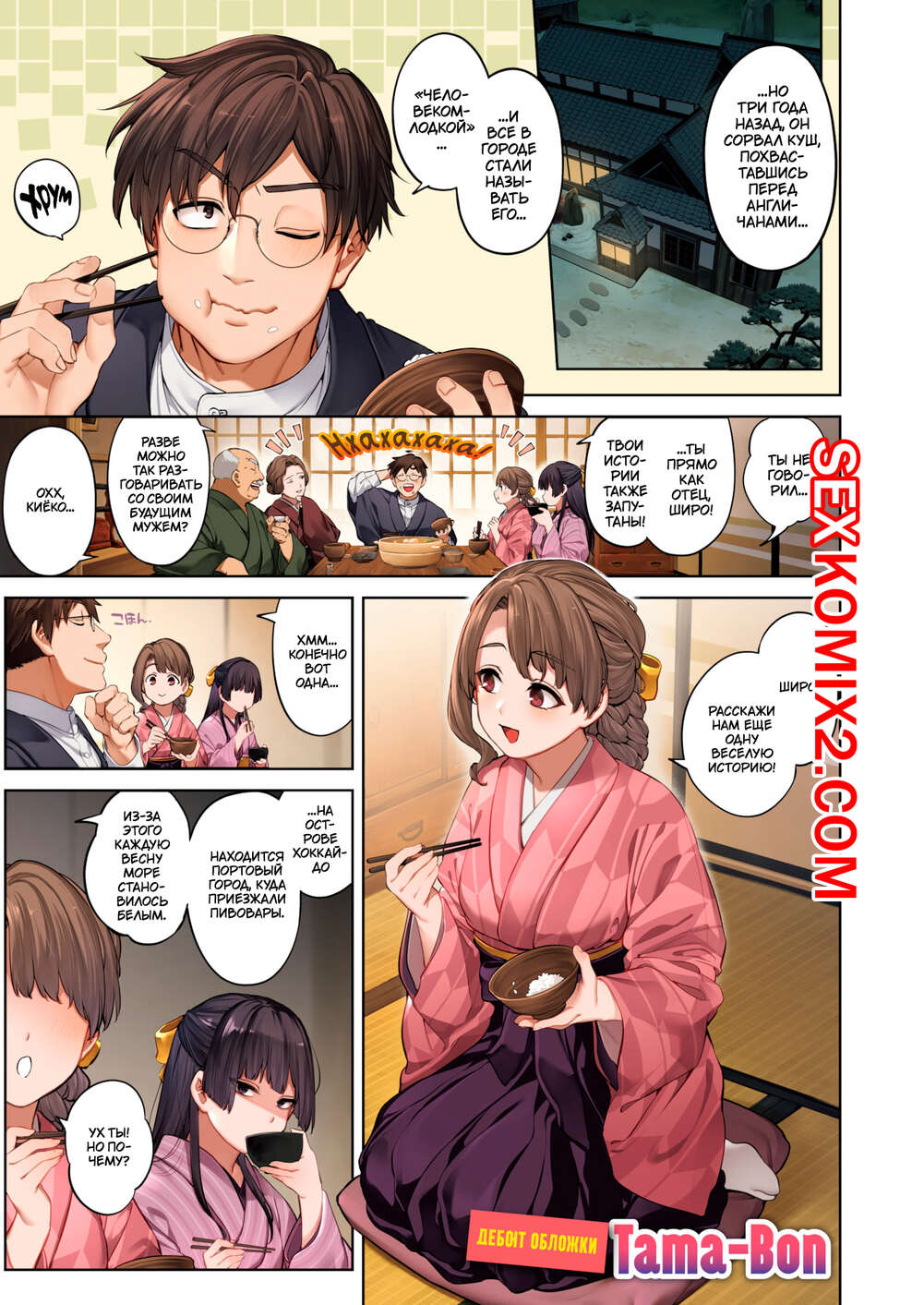 Порно комикс Разбитое стекло. Tamayura Banko Горячая брюнетка была очень возбуждена и решила повеселиться со своим дружком. Она стала дрочить его хуй ножками, после чего оседлала его и дала себя как следует выебать.