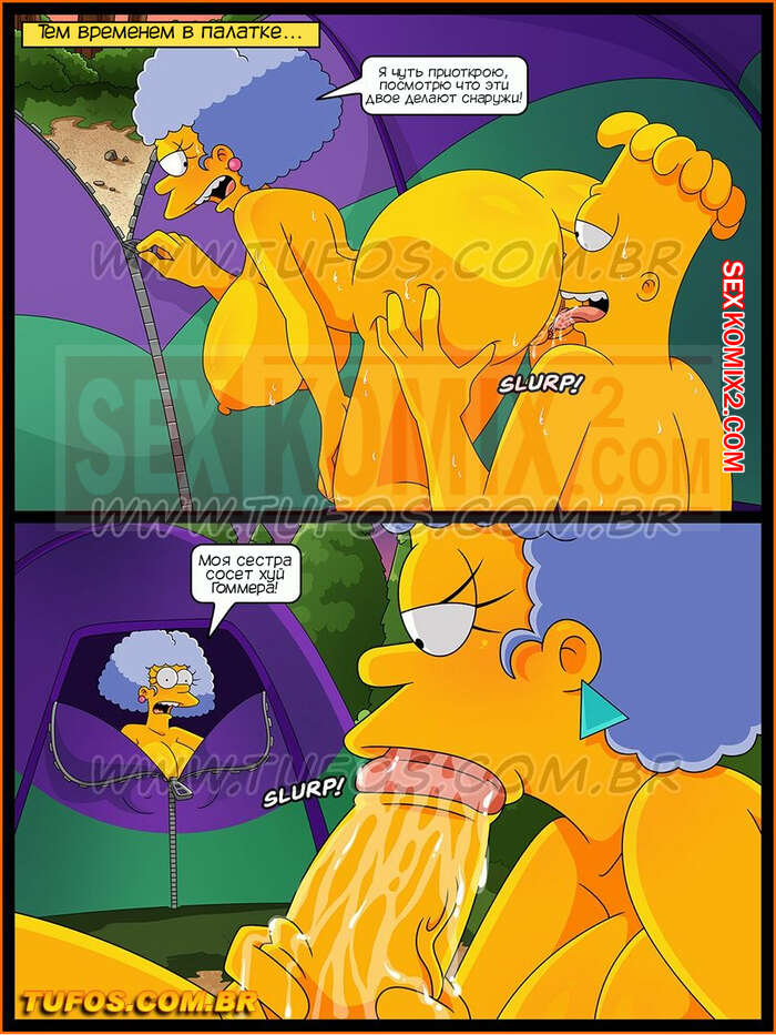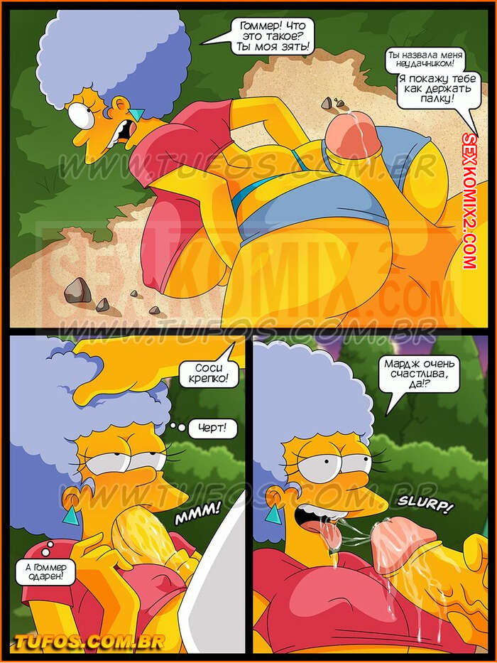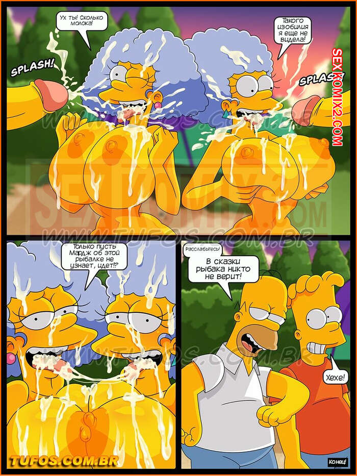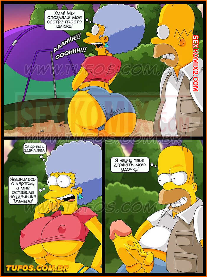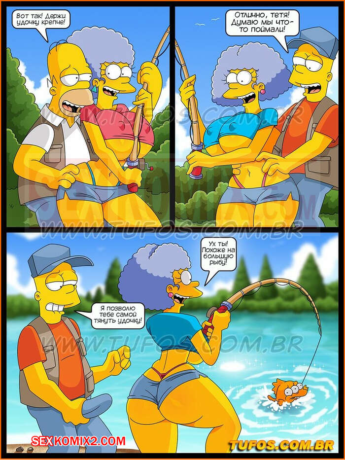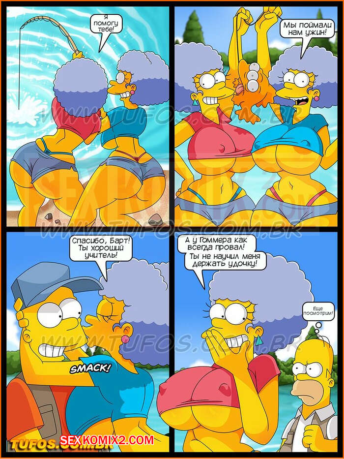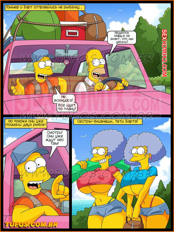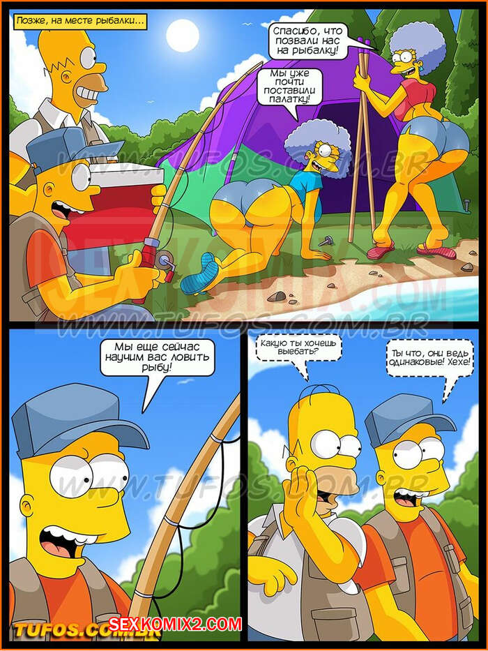 Порно комикс Симпсоны. Часть 30. Разврат на рыбалке. Гомер и Барт поехали на рыбалку, за ними увязались сестры Мардж. Мужчина нашли применение этим двум красоткам.