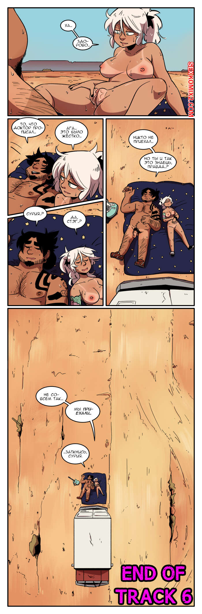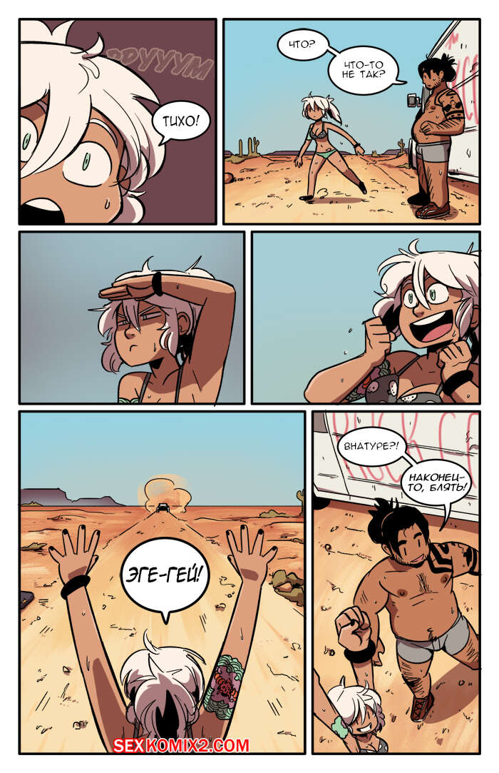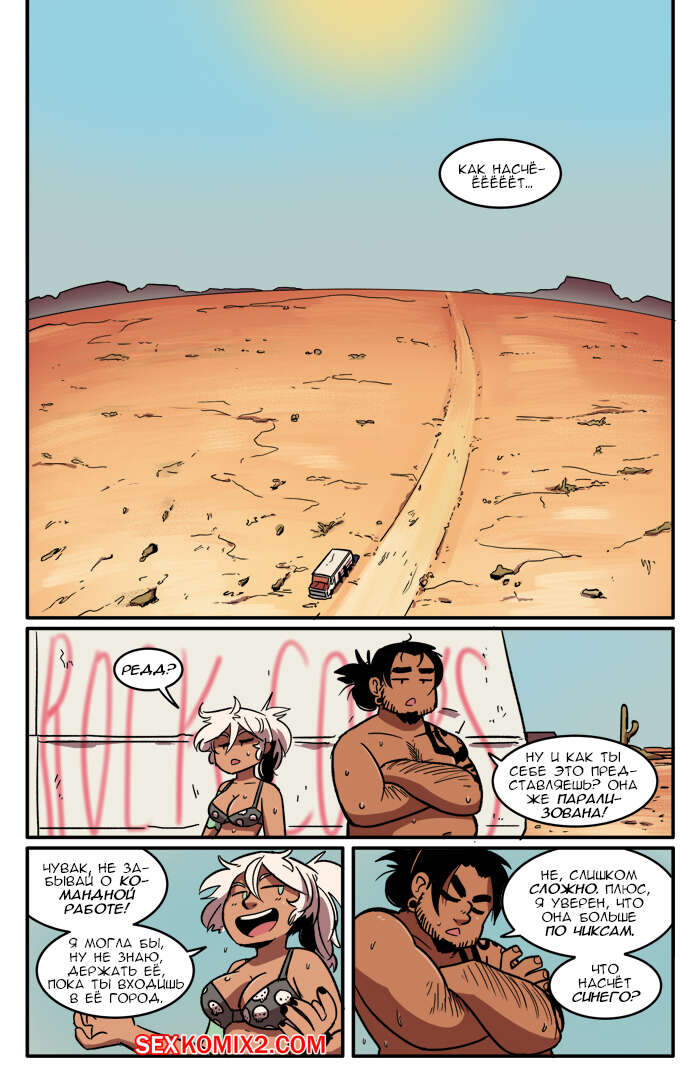 Порно комикс Рок хуй. The Rock Cocks. Часть 6. Горячо и тяжело Парочка отправилась в поездку на съемку самого сексуального клипа. Они так устали в поездке, что решили передохнуть и расслабиться. Они решили поебаться прямо в машине и после этого стало легче ехать. Добравшись на место они решили позвонить своему боссу, но тот не выходил на связь потому что снова ебался со своим дружком и от безысходности, парочка снова решила поебаться посреди пустыни.