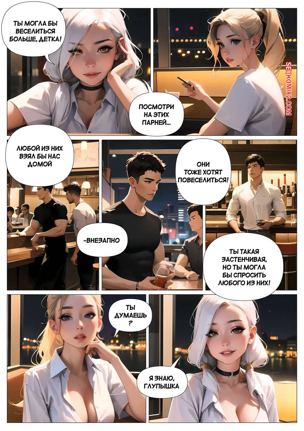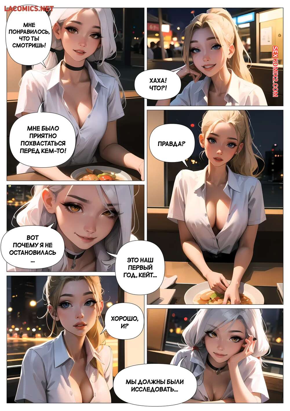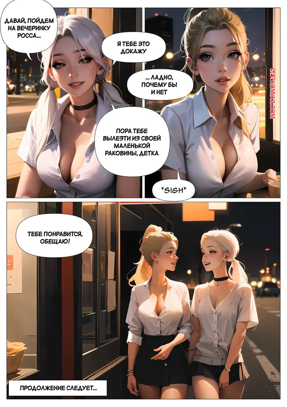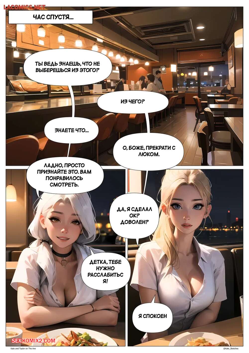 Порно комикс Интерлюдия Кейт и Тэйлор на проспекте. Kate Sketches Две подруги отправились на прогулку и зашли в кафе перекусить. Девушки положили глаз на симпатичных парней и договорились отправиться на вечеринку, чтобы повеселиться и подцепить когото.