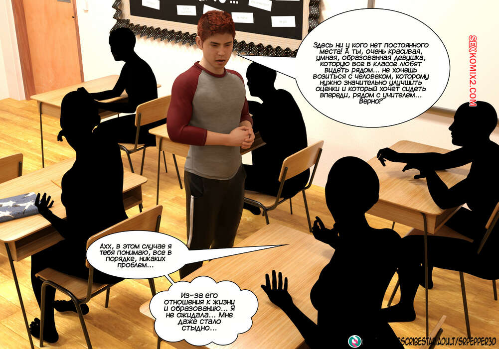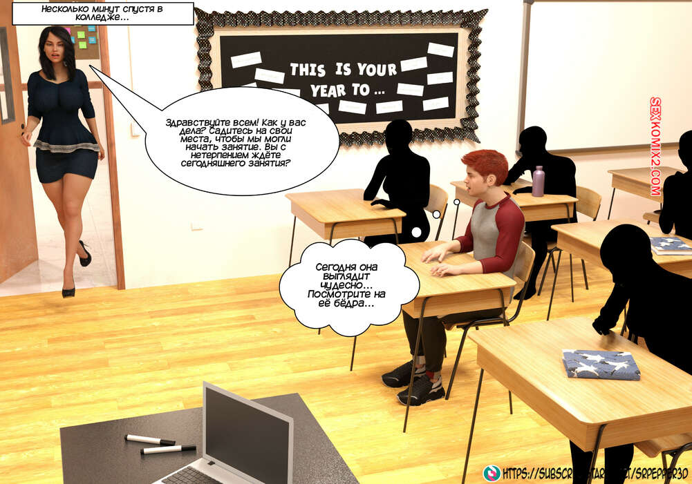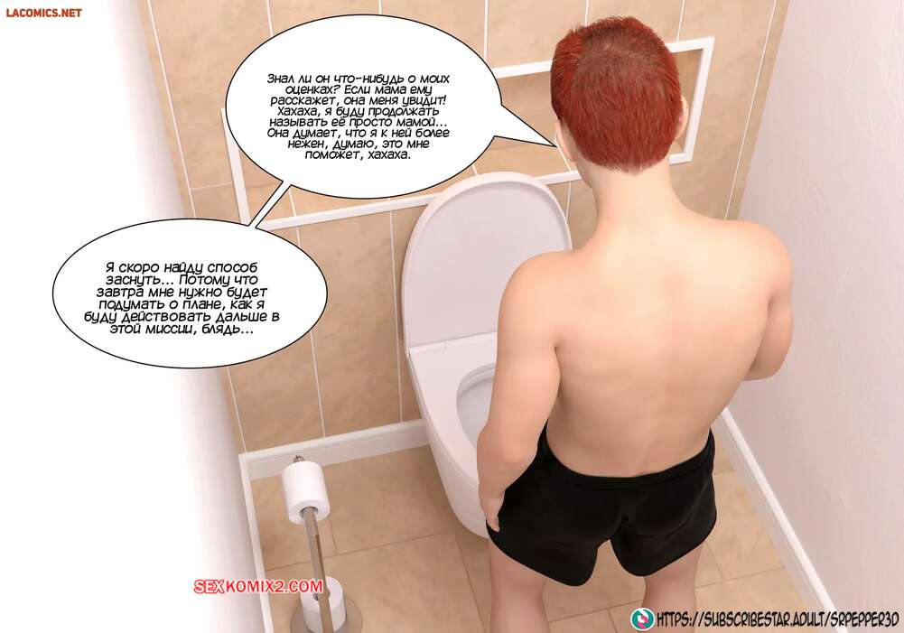 Порно комикс Мой учитель моя мачеха. Часть 2. My Teacher is My StepMom. Sr Pepper Джейк застал свою мачеху в ванной и соблазнил ее, чтобы трахнуть красотку, и кончил ей на задницу. Милфа прогнала пасынка из ванной, а сама стала принимать душ, чтобы смыть с себя сперму.