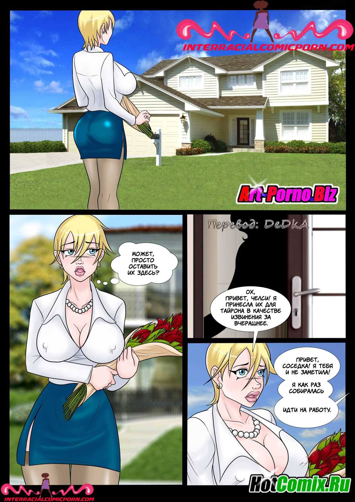 День секса картинки «Новый сосед». Молодая блондинка живёт с пожилым богатым мужчиной у которого уже давно не стоит член, но ей очень сильно хочется секса и она тоскует по крепкому в стояйку. Однажды она замечает, что по соседству заезжает молодая чернокожая пара. Ей сразу приглянулся мужчина, он был молод и накачан. У девушки сразу появляются дела во дворе, она начинает выщипывать траву нагибаюсь пониже демонстрируя свою задницу. Новый сосед естественно заметил это. И когда его жена уехала на работу, он пригласил блондинку к себе в гости попить чайку.