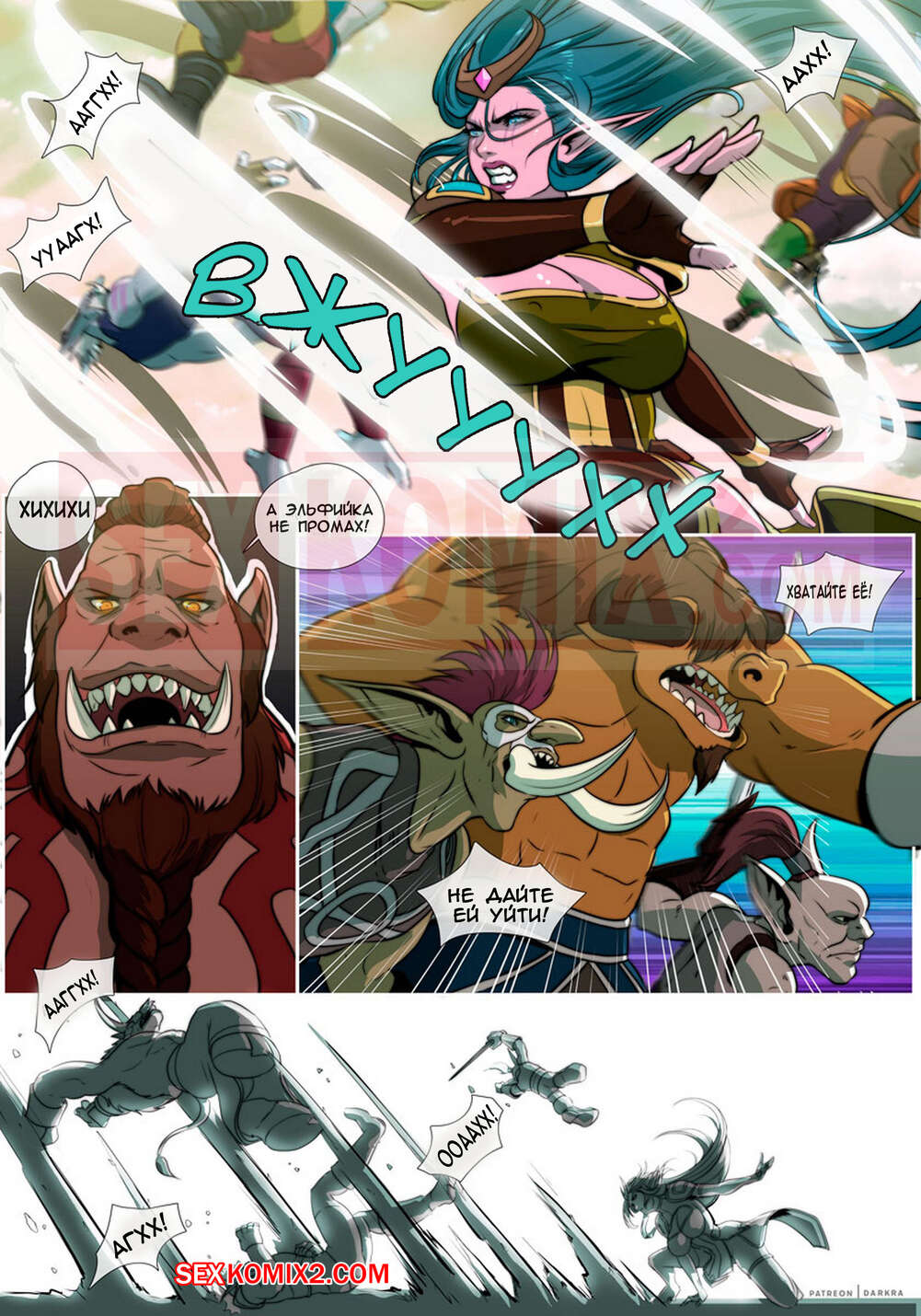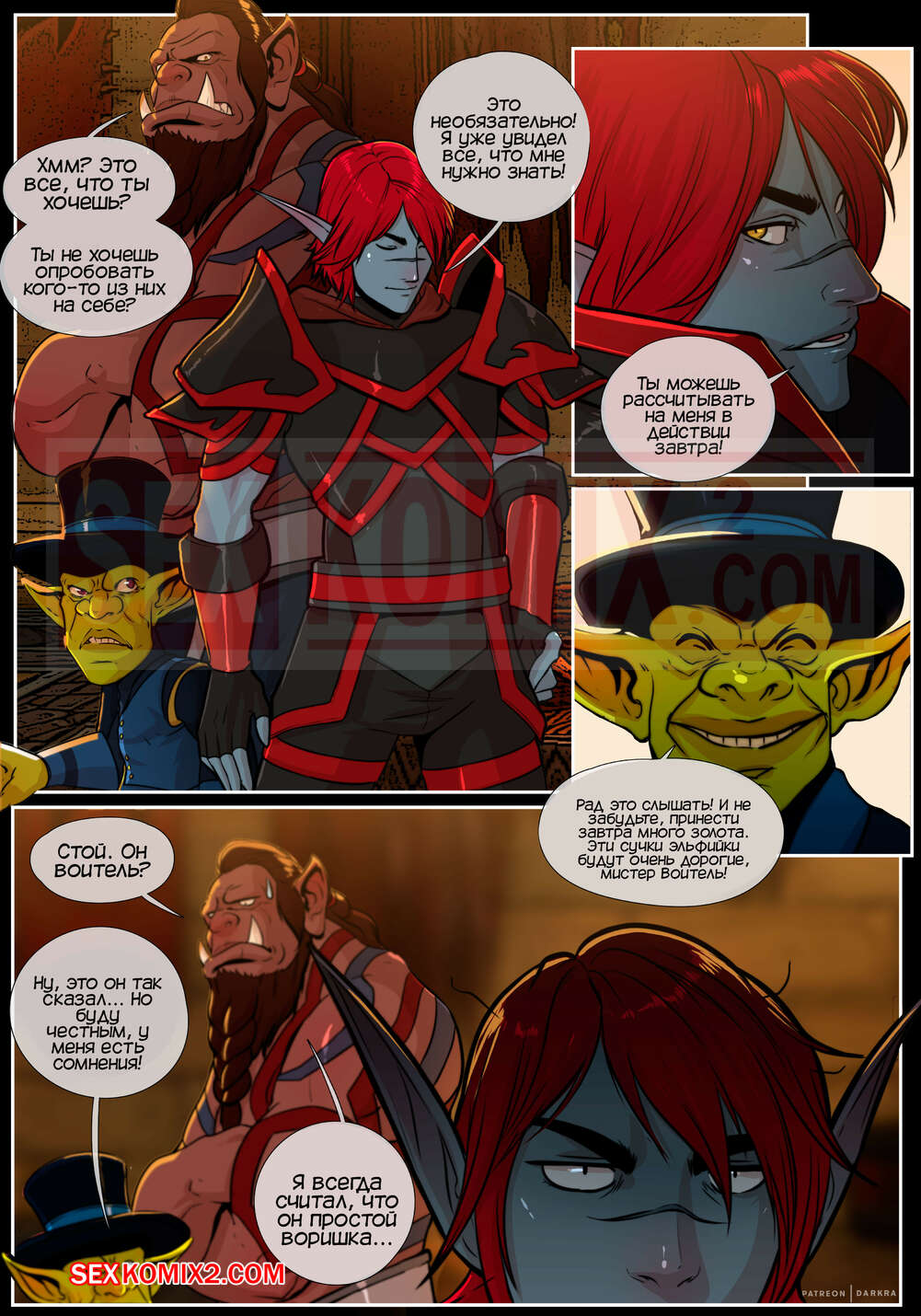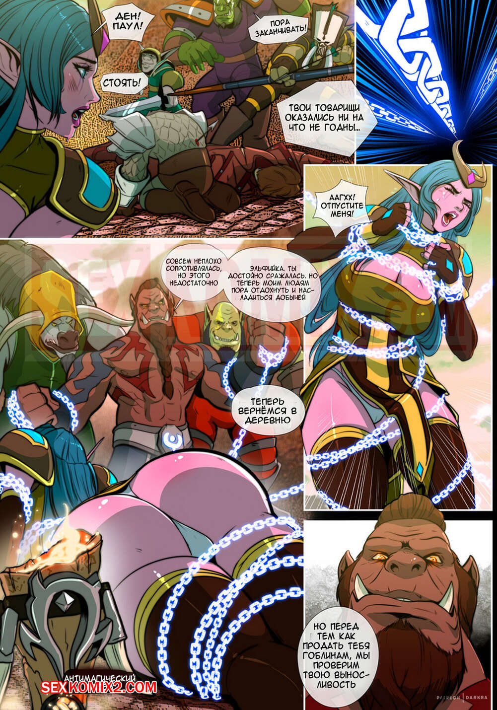 Порно комикс Варкрафт. Метка первобытной жажды. Часть 1. Железный клык. Темная ора схватила горячих эльфиек и продает их на аукционе. Парень выкупил одну за очень солидную сумму. Наверно он знает её ценность и кем эта красотка является. Но все же получить наслаждение за свои деньги он намерен.