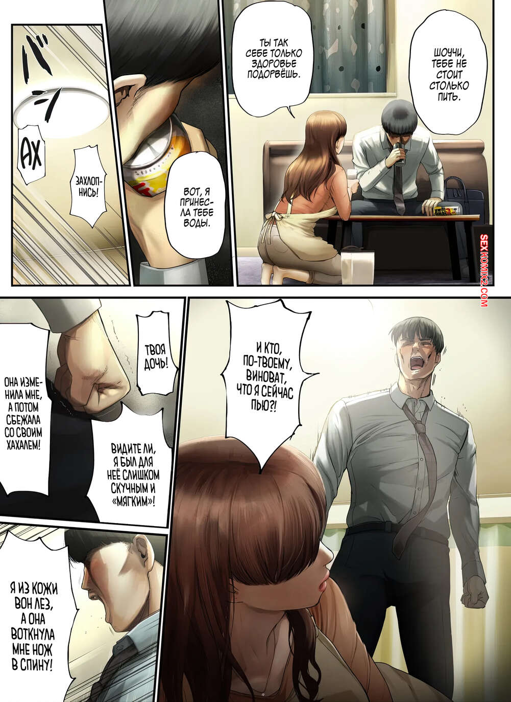 Порно комикс Моя жена бросила меня, потому что я был слишком мягким. Special G Жена бросила парня, но теперь с ним дома остались жить ее мать и сестра. Парень понял свою ошибку и стал жестче. Дома он трахает сперва аппетитную милфу, а затем и ее дочь.