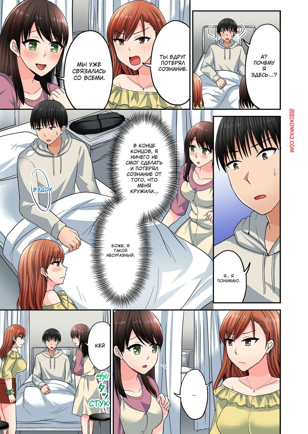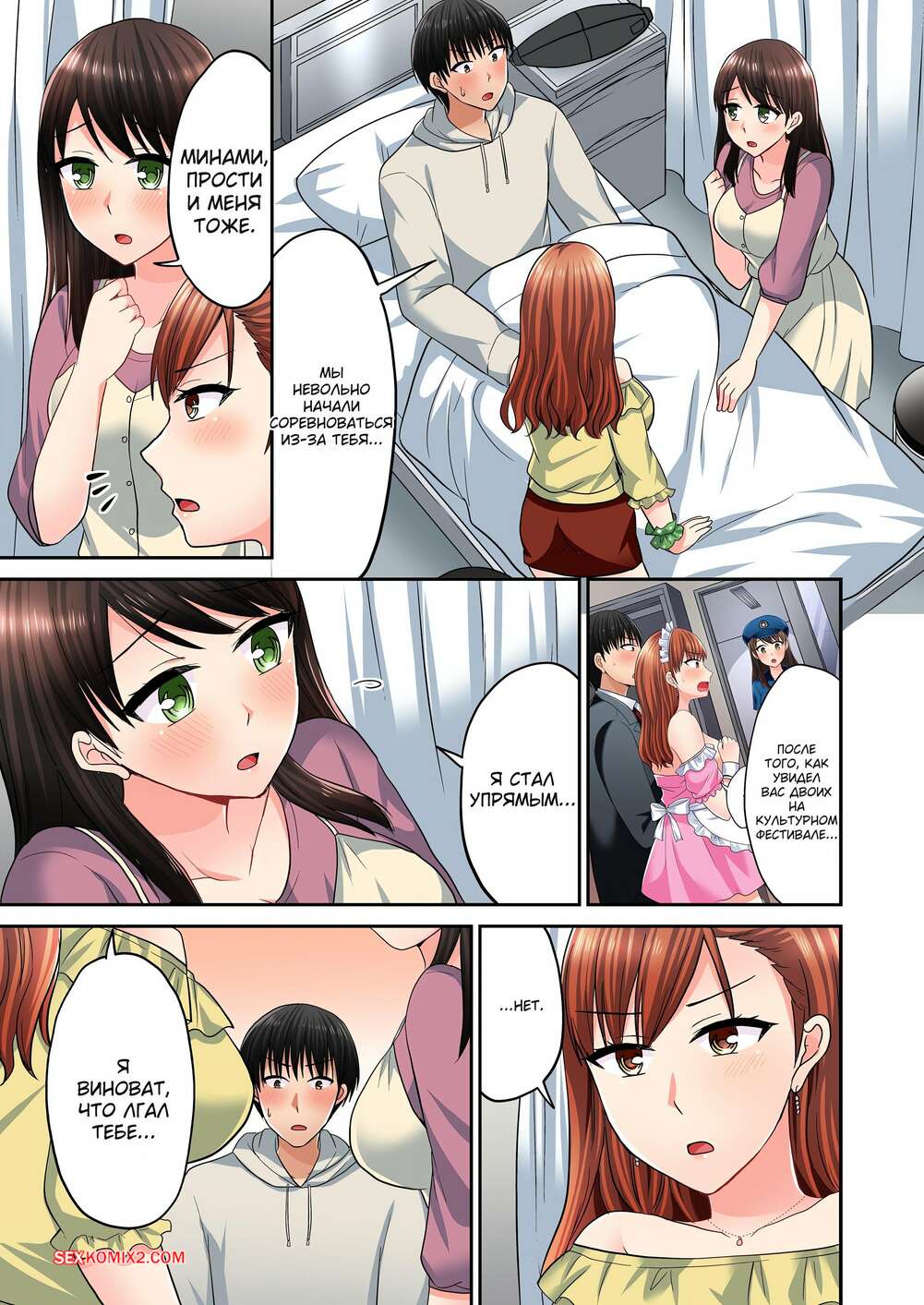 Порно комикс Месть Языком. Без цензуры. Часть 70 и 71 и 72 Парень попал в больницу и горячие красотки пришли его проведать. Одна из них осталась с парнем наедине и он стал ласкать ее сиськи, желая вставить в нее свой член.