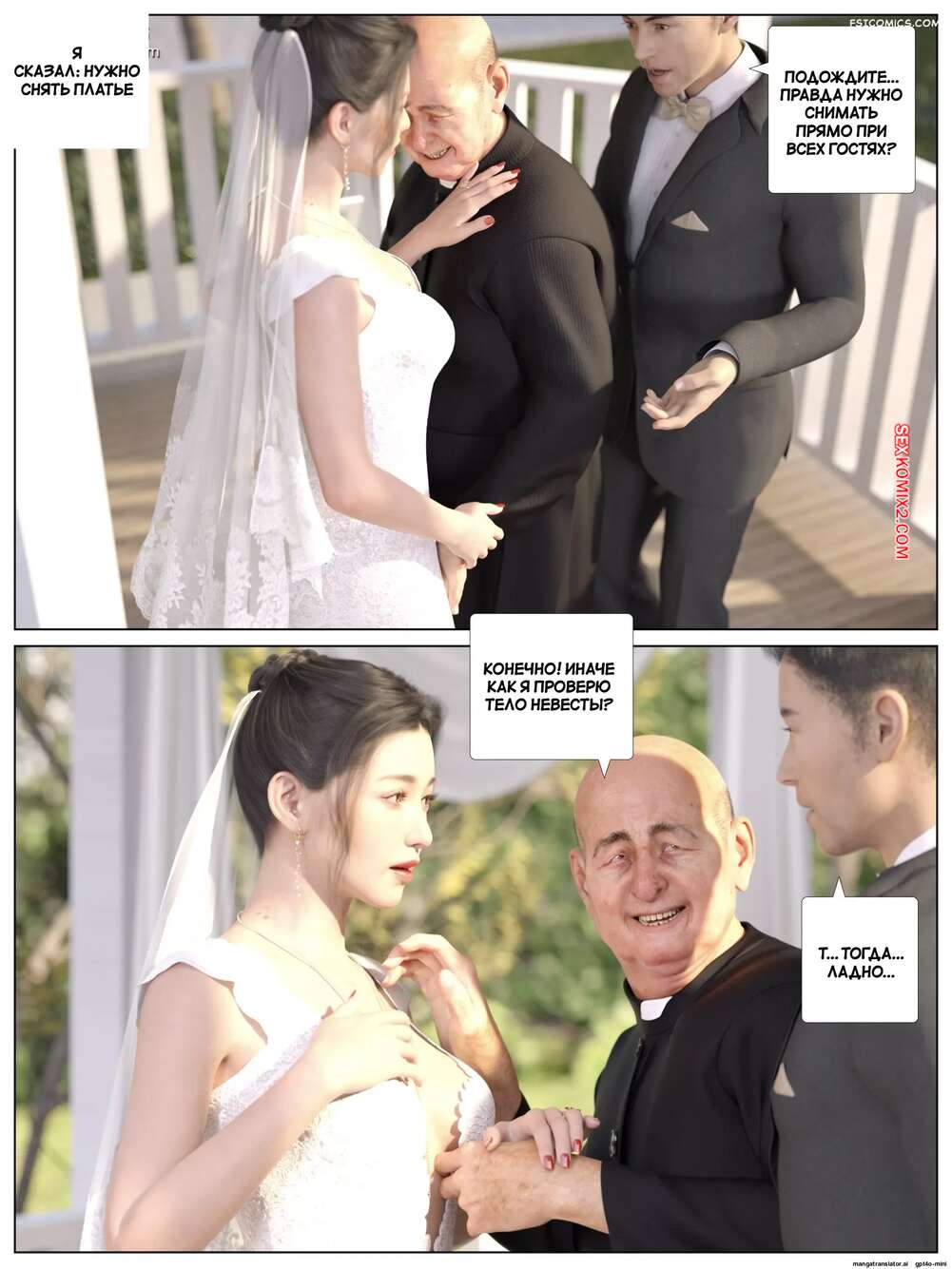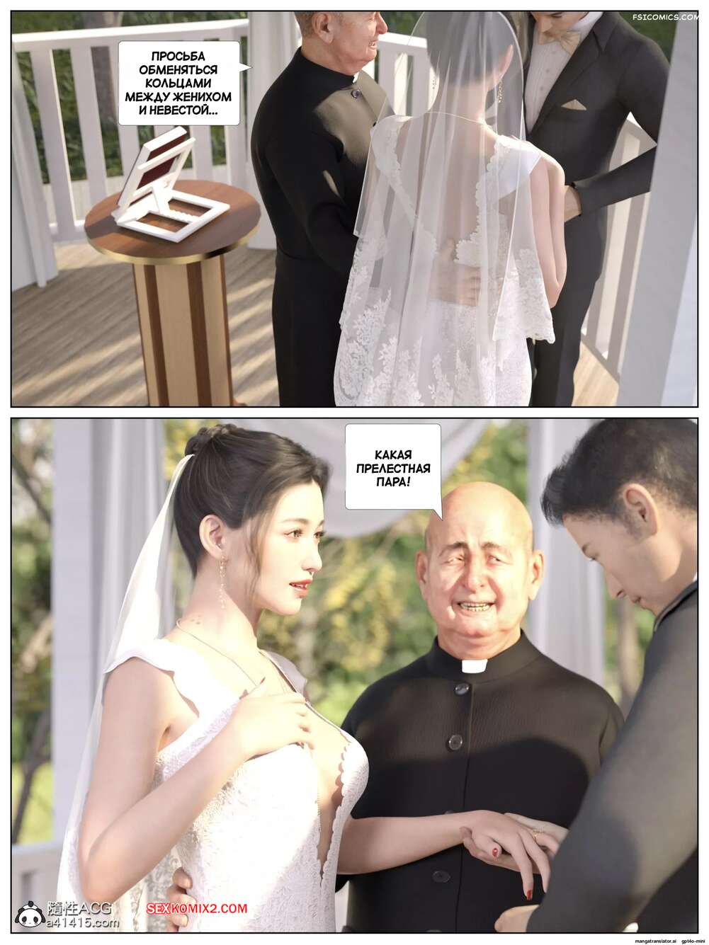 Порно комикс Любовные истории. Свадьба Мэй. Love Stories. Mays Wedding. AWE SOME Ryan. Горячая брюнетка вышла замуж за парня, после чего священник сразу решил насладиться телом красотки. Он поставил новоиспеченную жену на колени и дал ей отсосать свой член, после чего выебал ее попку.