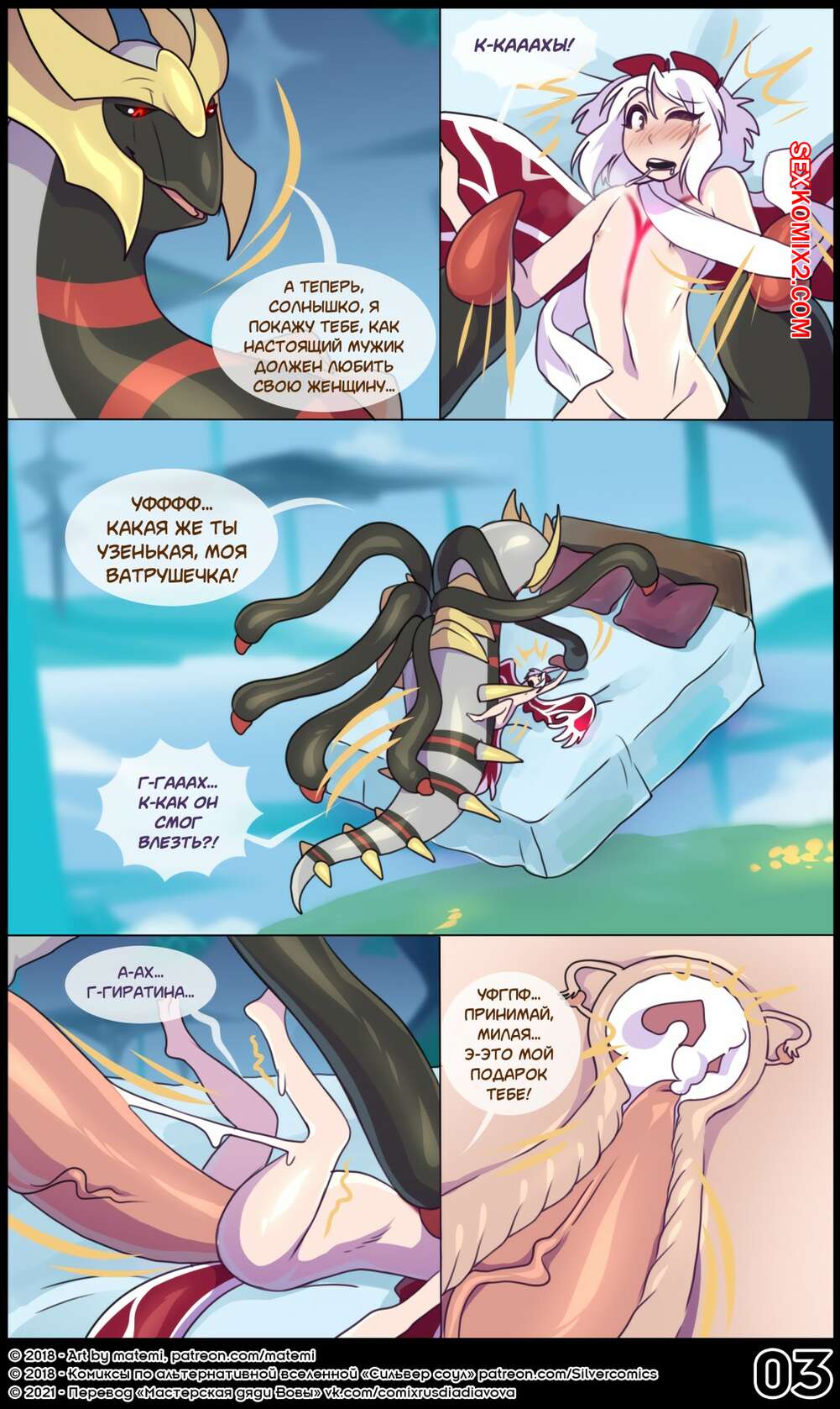 Порно комикс Покемоны. ПЛС. Урок от Гиратины Парочка драконов подцепили классную сисястую блондинку и решили с ней повеселиться, классно ее отъебав. Они начали одновременно трахать ее и в пизду и в рот, заставляя сучку кричать от удовольствия.