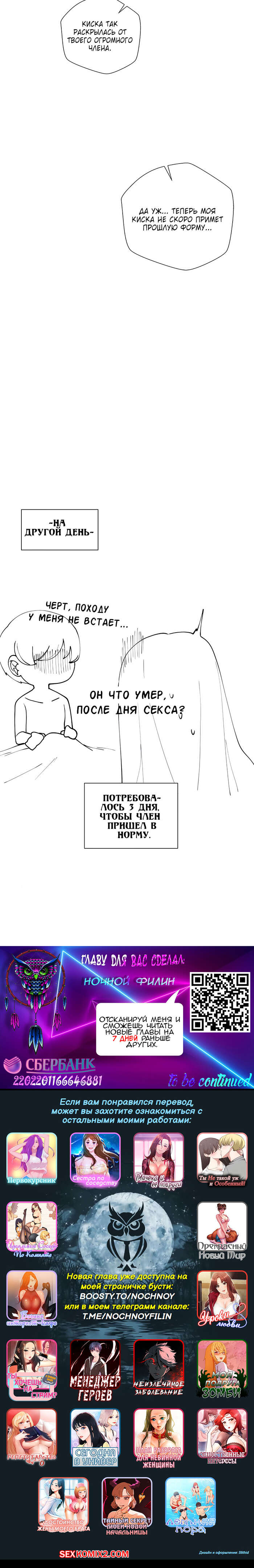 Порно комикс Репетиторство. Часть 35. Lljinnyeo tutoring Сексуальная красотка блондинка решила устроить классное занятие своему ученику. Она похвалила его за хорошую учебу, позволив ему оттрахать себя своим большим членом в разных позах.