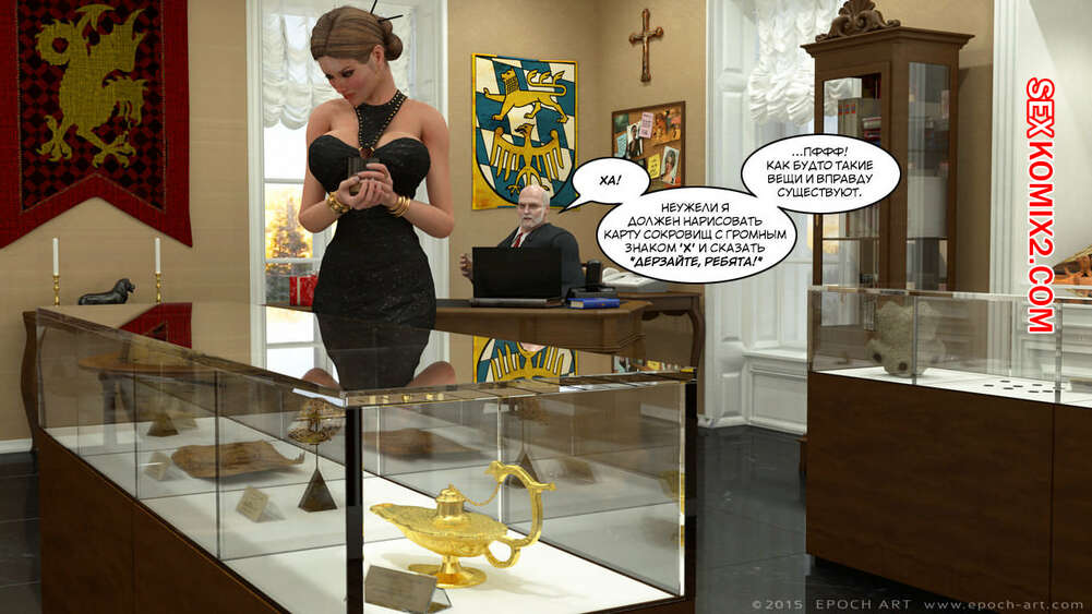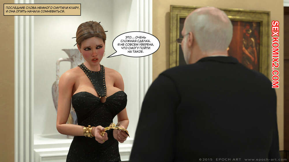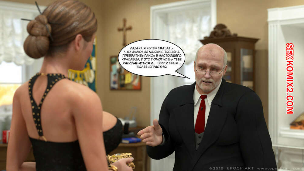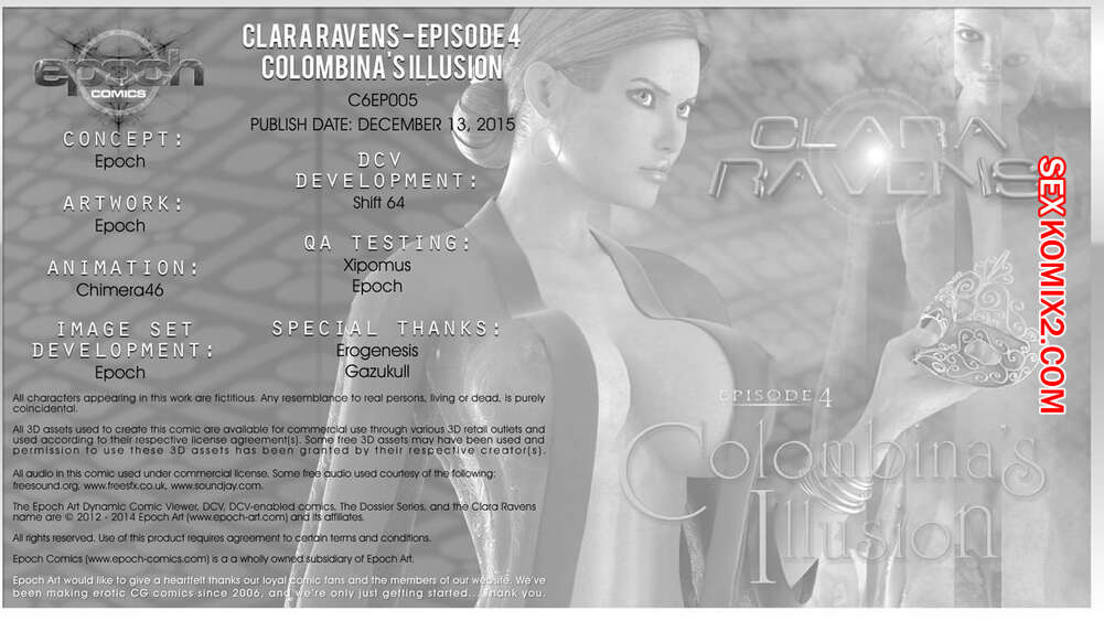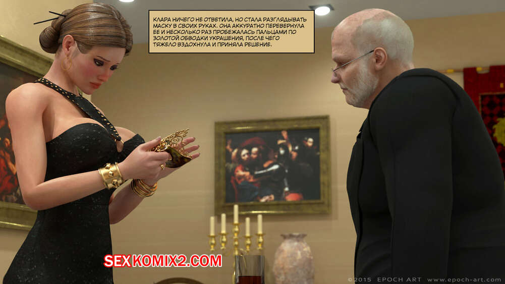 Порно комикс Клара Рэвенс. Часть 4. Иллюзия Коломбины Красотке понадобилось раздобыть золотую драгоценную маску. Чтобы ее получить ей надо было переспать с пожилым мужиком, владеющим ею. К счастью, маска может создавать иллюзии, поэтому перед нашей героиней предстал молодой парень с большим хуем.