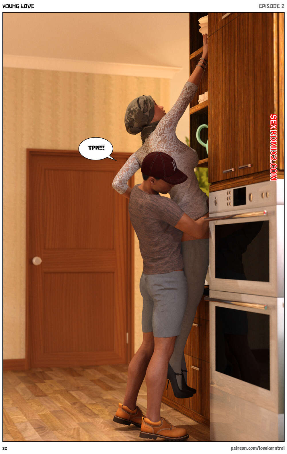 Порно комикс Любовная история. Часть 2. Юная любовь. Young love. Losekorntrol Горячая красотка брюнетка снова воспользовалась тем, что ее муж уехал из дома. Когда к ней пришел молодой паренек для работы, она стала его соблазнять и начала сосать большой хуй парня, а затем дала ему себя выебать.