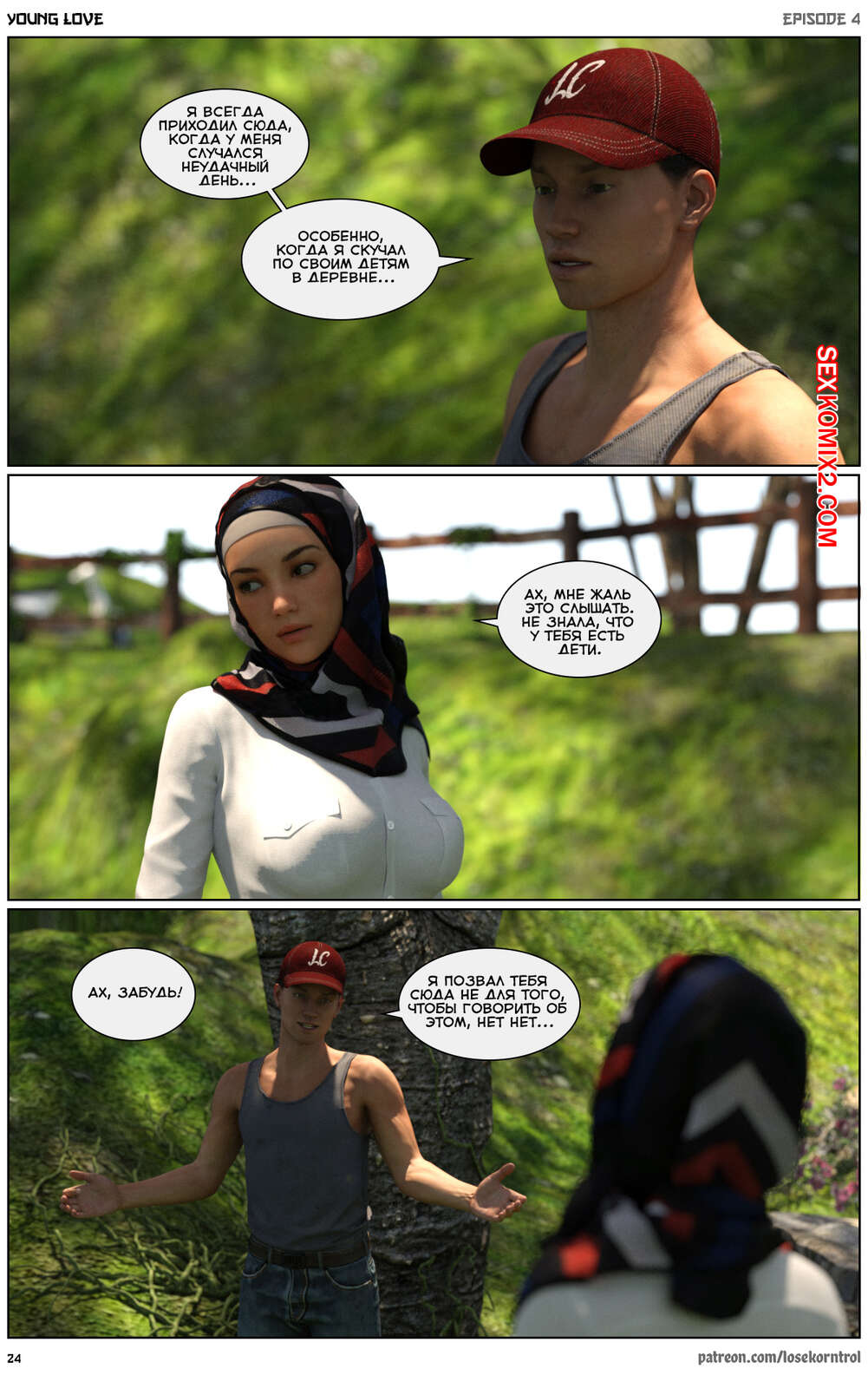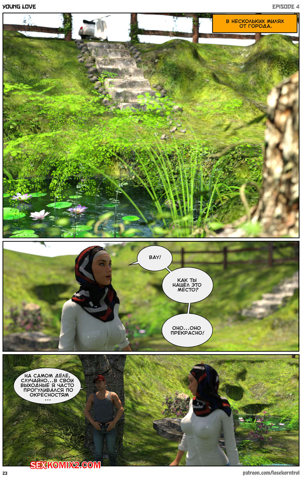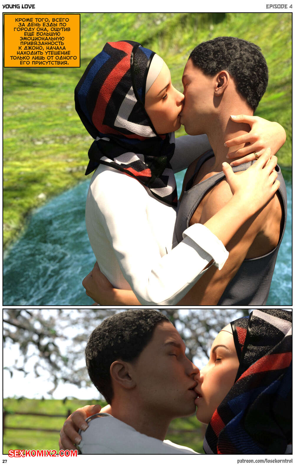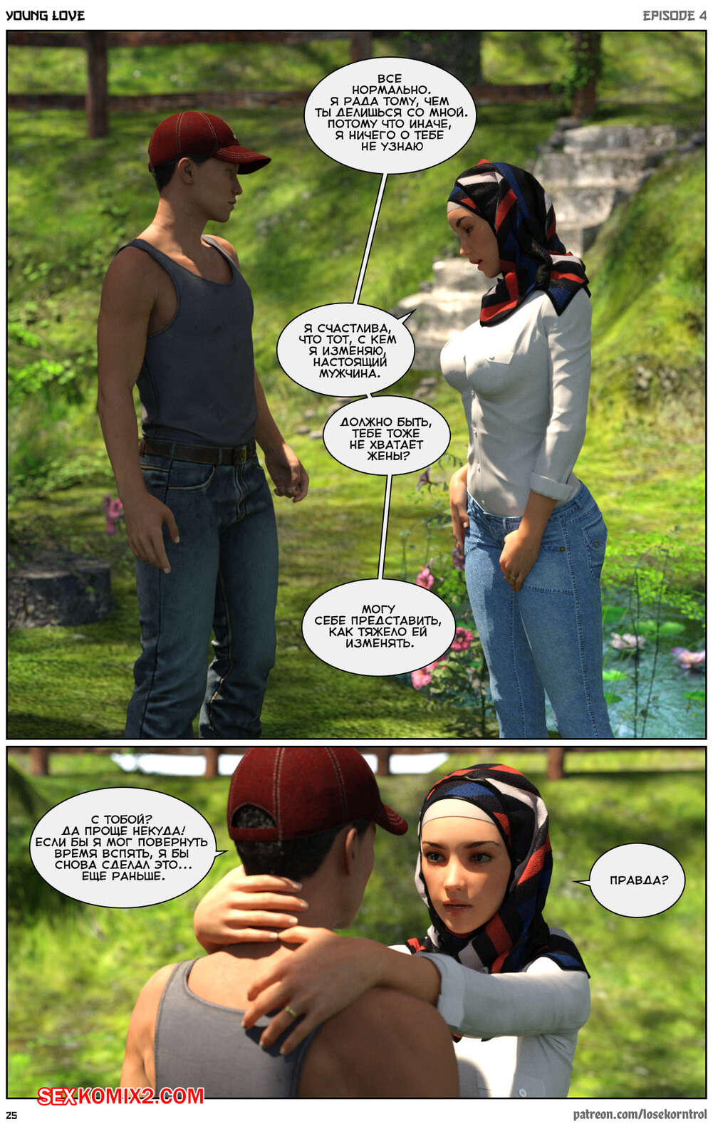 Порно комикс Любовная история. Часть 4. Юная любовь. Young love. Losekorntrol Горячая красотка брюнетка продолжает изменять своему любимому мужу, пользуясь тем, что он уезжает из дома частенько. На этот раз сучка отправилась со своим молодым любовником на природу, где отсосала его большой хуй и дала ему себя выебать.