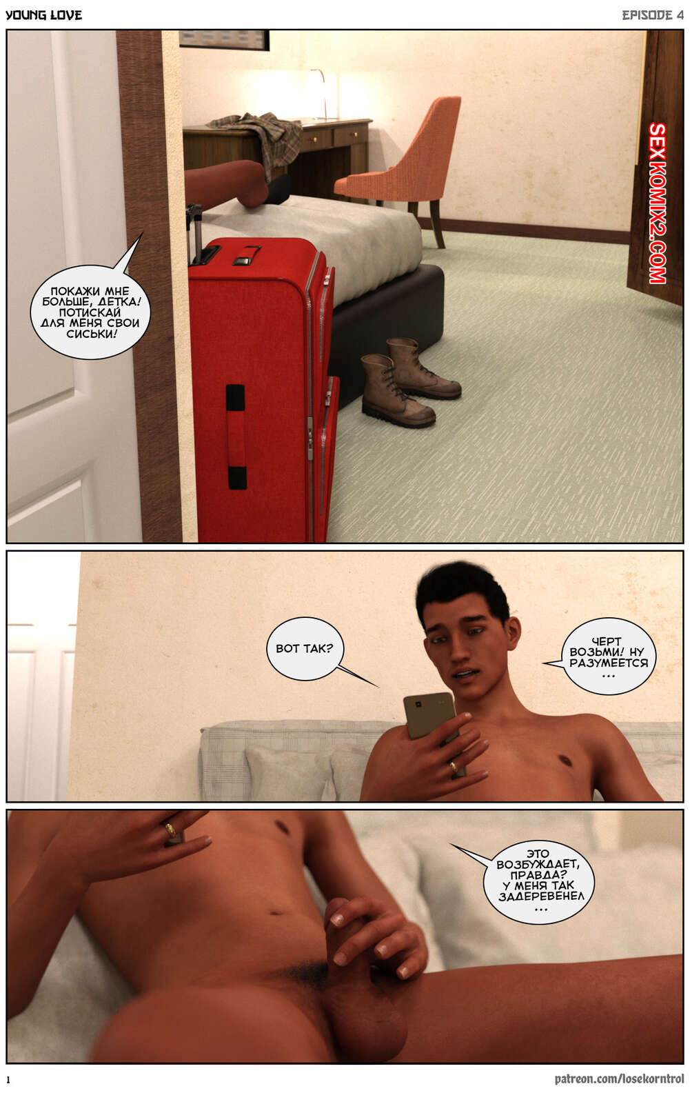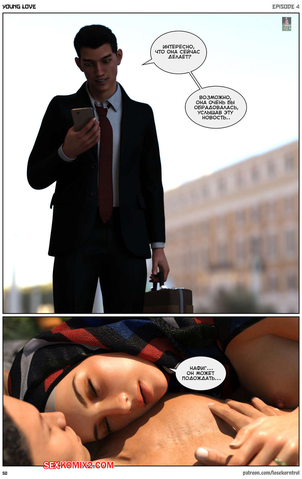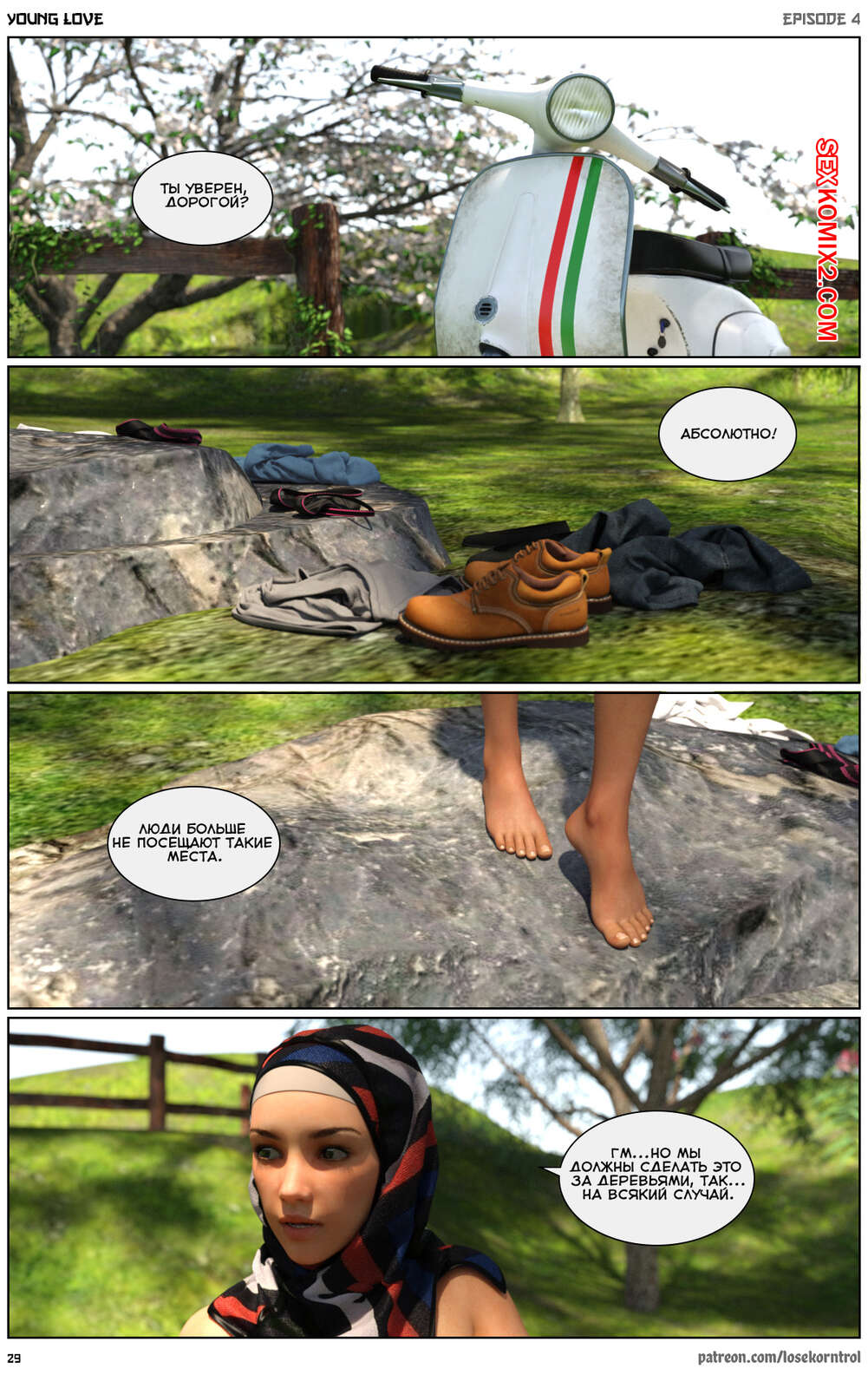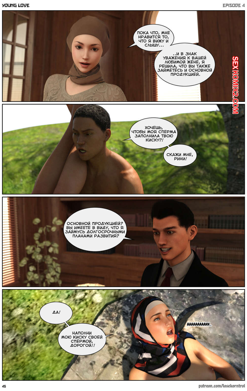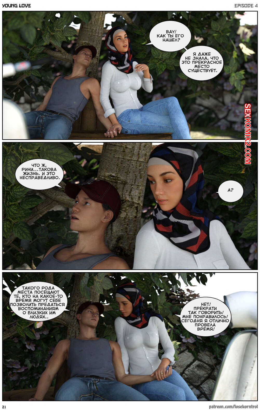 Порно комикс Любовная история. Часть 4. Юная любовь. Young love. Losekorntrol Горячая красотка брюнетка продолжает изменять своему любимому мужу, пользуясь тем, что он уезжает из дома частенько. На этот раз сучка отправилась со своим молодым любовником на природу, где отсосала его большой хуй и дала ему себя выебать.