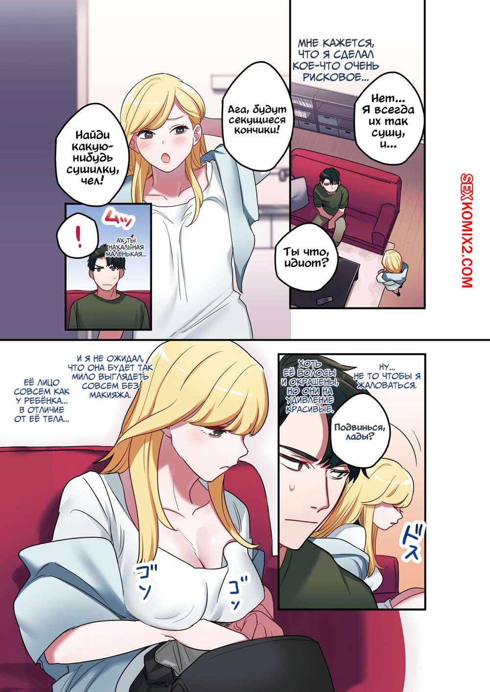 Порно комикс Беглянка. Runaway Girl Горячая сисястая блондинка застала парня за дрочкой в ванной. Она решила повеселиться с ним и разделась, чтобы отсосать большой хуй парня и дать ему себя выебать.