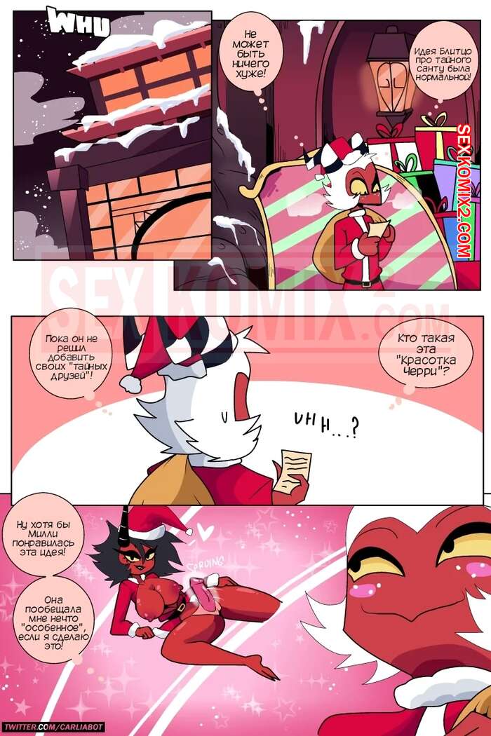 Порно комикс Адский босс. Рождественский подарок. A Christmas Gift. Carliabot Парнишка демон стал разносить подарки в качестве тайного санты. Когда он принес подарок сисястой красотке, она предложила ему остаться у нее и согреться, а затем дала ему отлизать свои сиськи и хорошенько себя выебать.