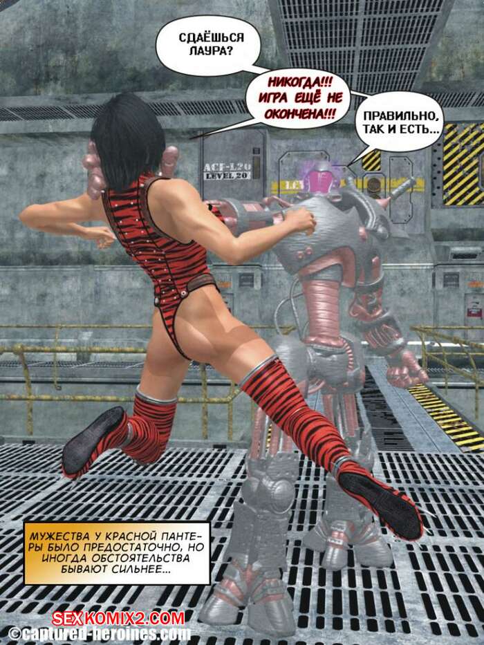 Порно комикс Красная пантера Горячая сисястая брюнетка столкнулась с огромным роботом и стала с ним сражаться. Роботу удалось ее одолеть, после чего он раздел сучку и выебал ее своим большим хуем.