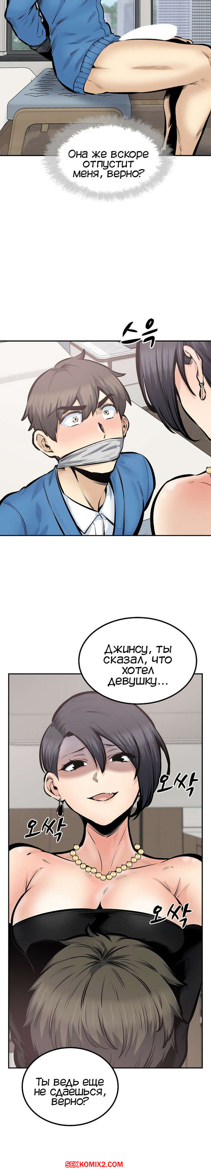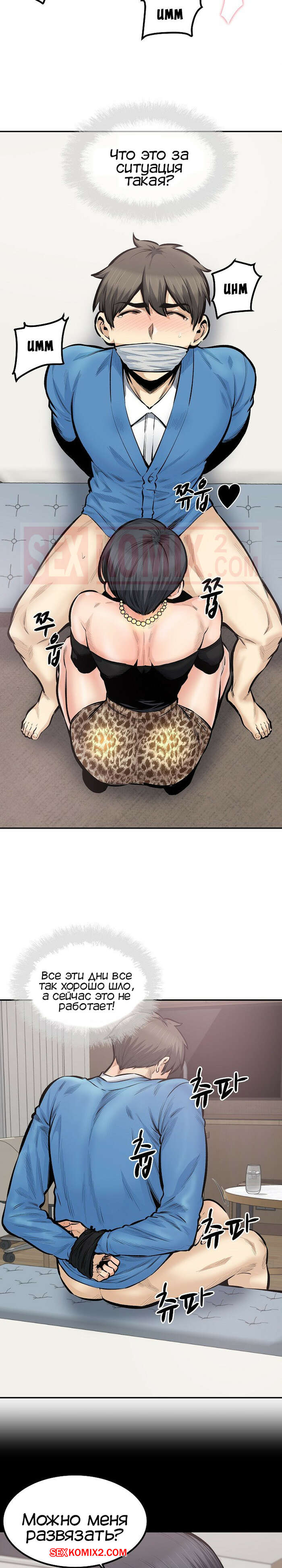 Порно комикс Извини, это моя комната. Часть 112. Excuse me This is my Room Парень встретился со своей старой подругой и предложил ей вступить в свой гарем. Они уединились и она связала его на стуле, после чего стала сосать его большой хуй и хорошенько его трахнула.