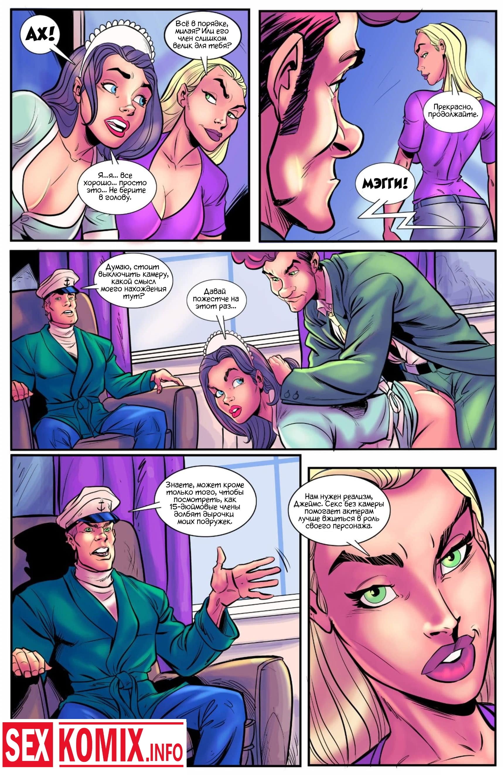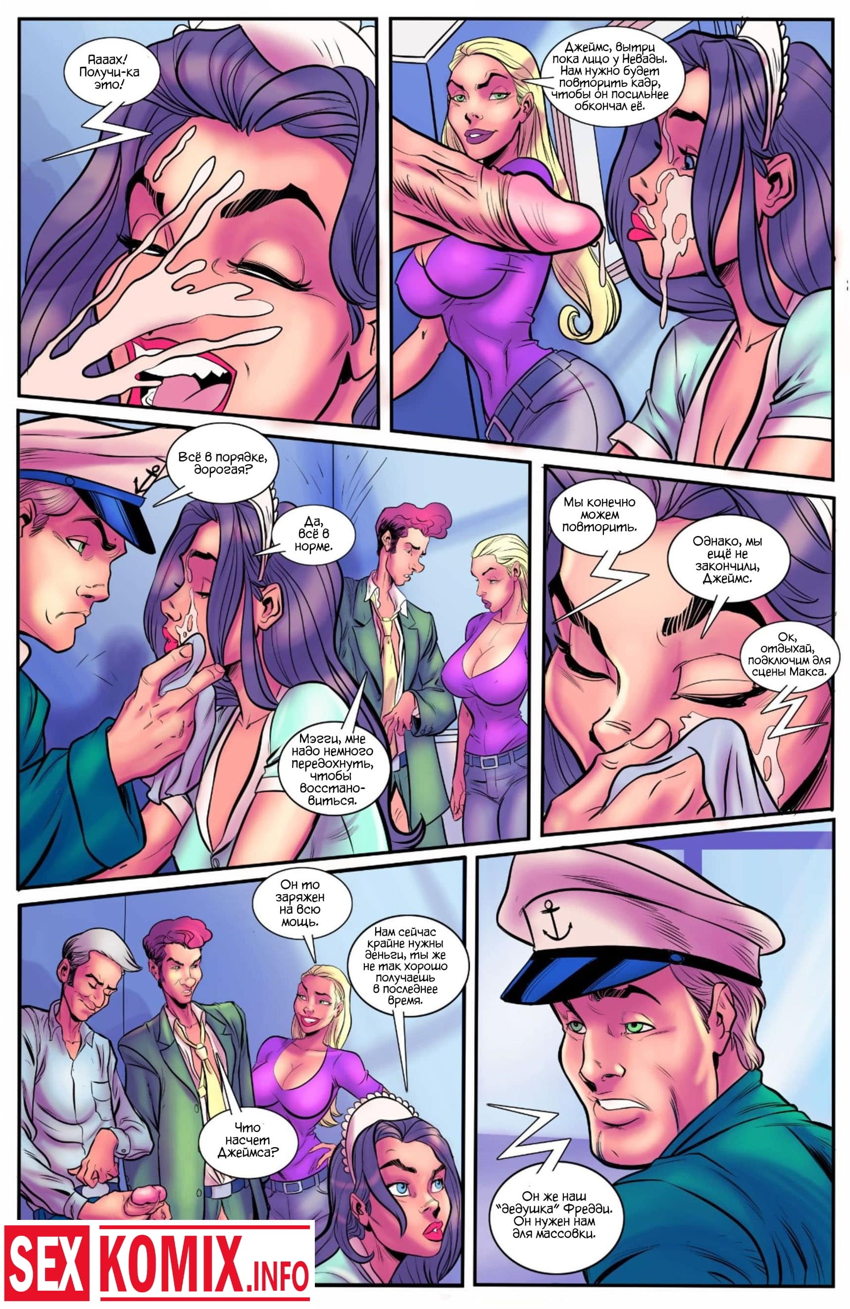 Порно комикс Порно звезды играют по крупному. Озабоченный капитан корабля узнал, что на этом рейсе плывун несколько порно звезд и должен был обязательно с ними познакомиться. Он привел красоток, показать свою каюту и девушки предложили занять горячим сексом, само собой мужчина не отказался и они славно потрахались.